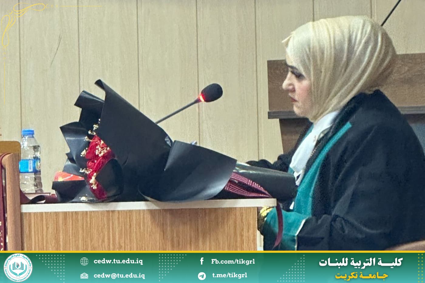 نوقشت في كلية التربية للبنات جامعة تكريت قسم الكيمياء ، اليوم الخميس الموافق 27/ 2/ 2024 ، وعلى رحاب قاعة المرحوم الدكتور صباح بهاء الدين