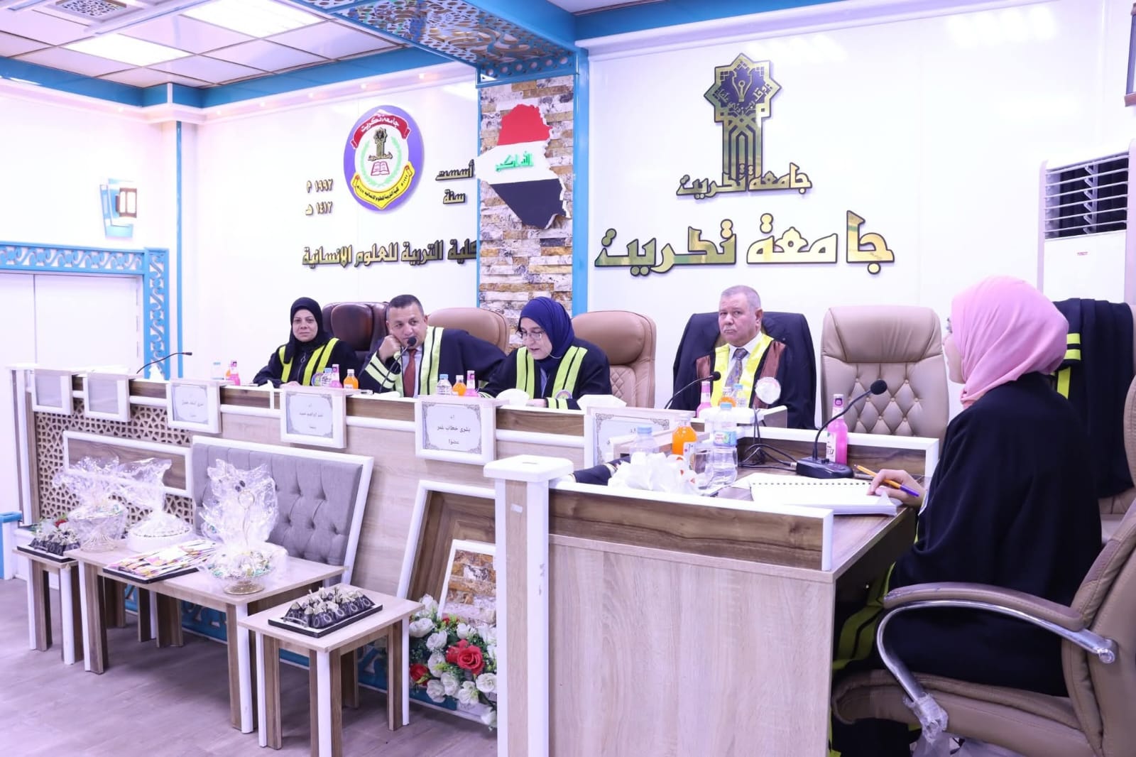 شاركت الأستاذ الدكتورة بشرى خطاب عمر، التدريسية في قسم العلوم التربوية والنفسية بكلية التربية للبنات – جامعة تكريت، في عضوية لجنة مناقشة خارجية لرسالة ماجستير في قسم العلوم التربوية والنفسية بكلية التربية للعلوم الإنسانية – جامعة تكريت، والمقدمة من الطالبة تسنيم سعود محمد، والموسومة: