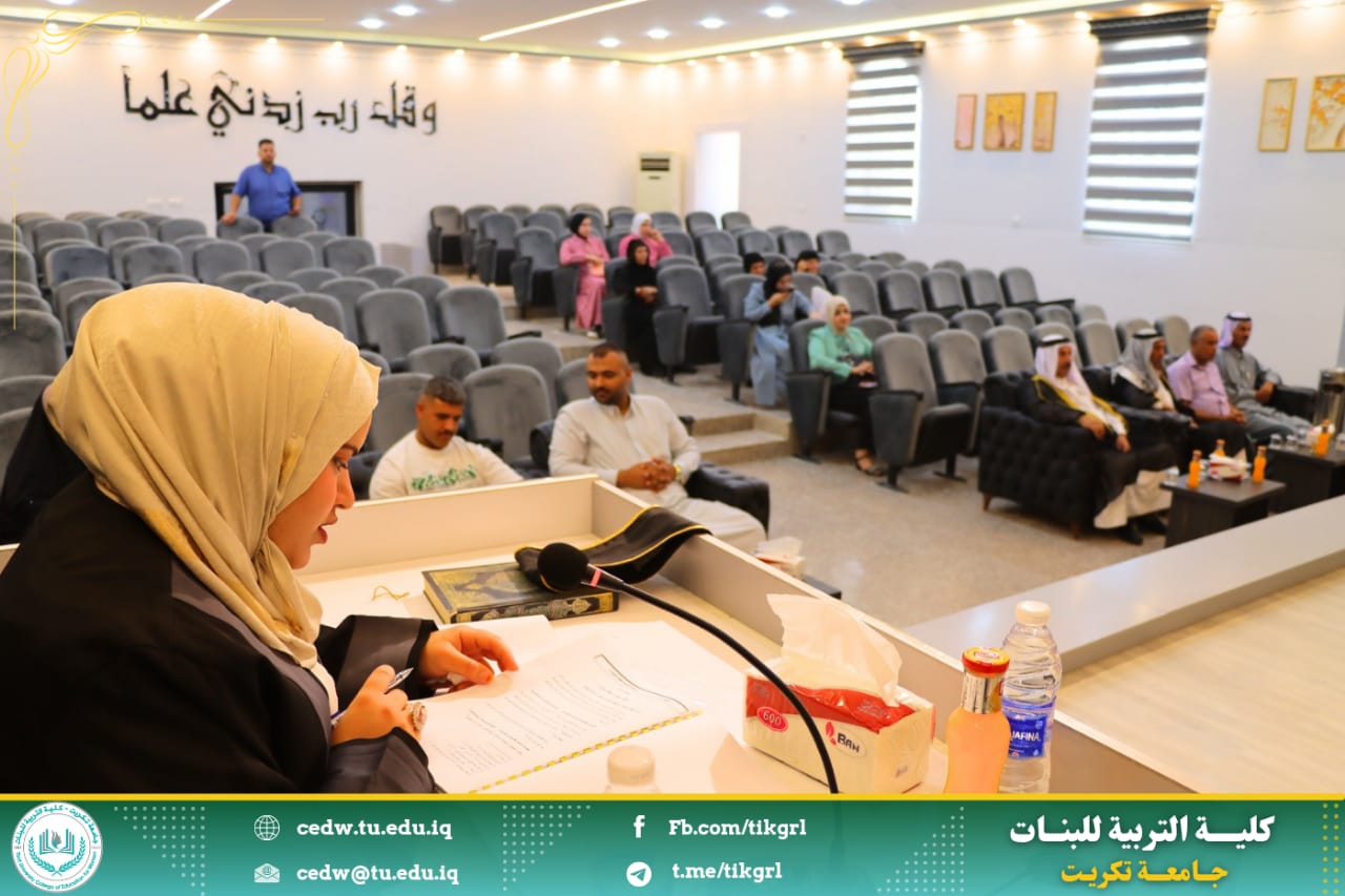 نوقشت في كلية التربية للبنات في جامعة تكريت، قسم اللغة العربية، اليوم الاثنين ١٦ / ٦ / ٢٠٢٥، وعلى رحاب قاعة المرحوم الأستاذ الدكتور جايد زيدان