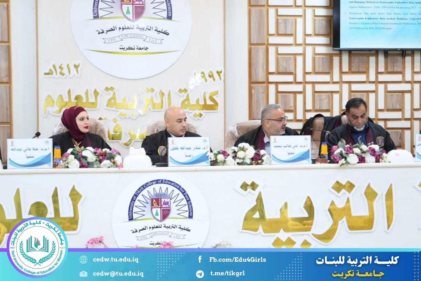 شاركت الأستاذ المساعد الدكتورة هبة هاني عبدالله، التدريسية في قسم الرياضيات بكلية التربية للبنات – جامعة تكريت، في عضوية لجنة مناقشة خارجية لرسالة ماجستير قدّمها الطالب (محمد طه عايد) في قسم الرياضيات بكلية العلوم الصرفة – جامعة تكريت، والموسومة: