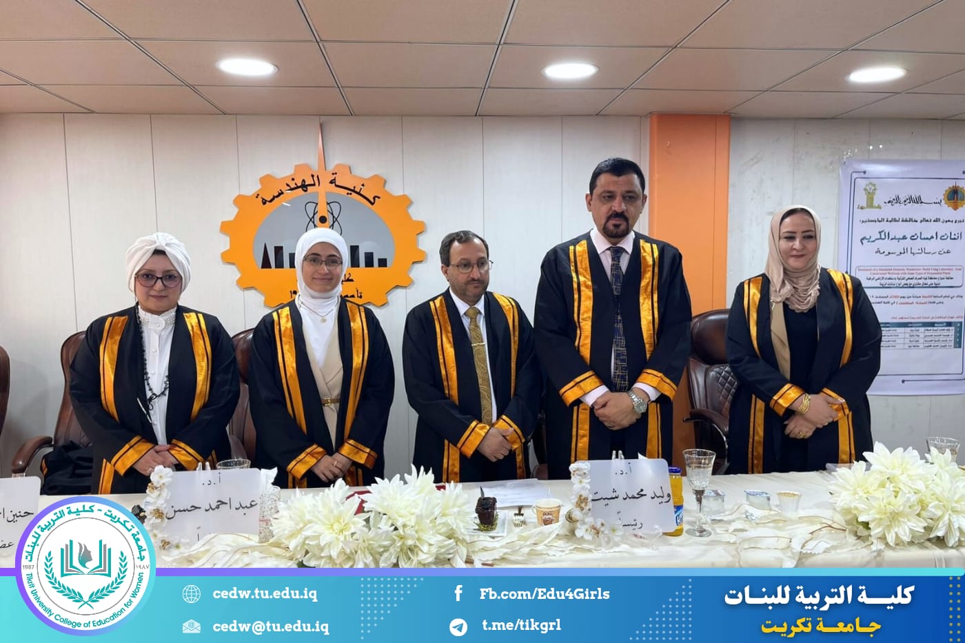 وفي ختام الجلسة، أثنت لجنة المناقشة على الجهود البحثية التي بذلتها الطالبة والنتائج التي توصّلت إليها، وأوصت بمنحها درجة الماجستير بعد إجراء التعديلات اللازمة وفق ملاحظات الأساتذة المناقشين.