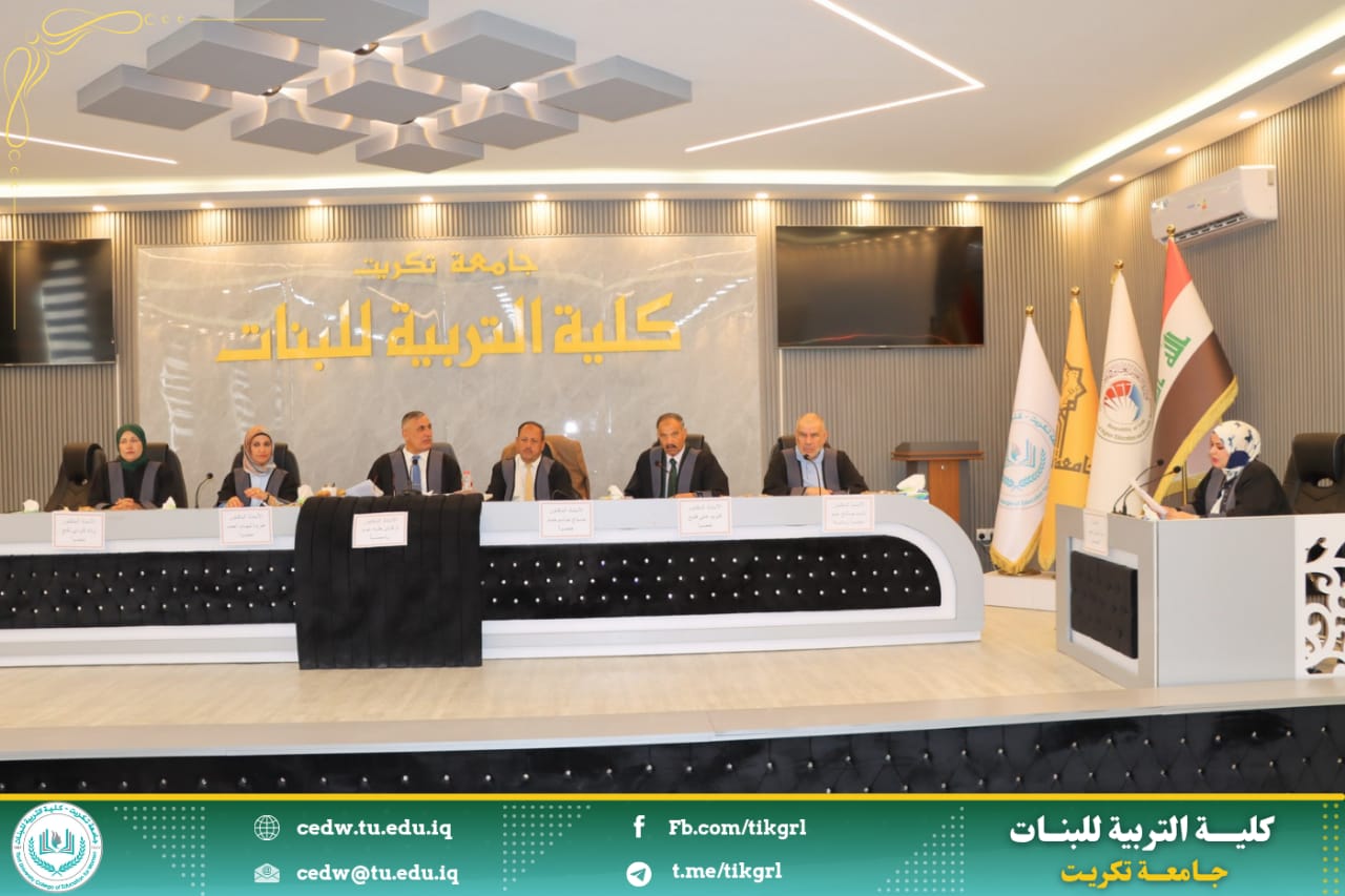 وقد حضر المناقشة السيد اسماعيل الهلوب عضو مجلس محافظة صلاح الدين والاستاذ الدكتورة نجلاء عبدالحسين عليوي عميد كلية التربية للبنات وعدد من السادة التدريسيين.