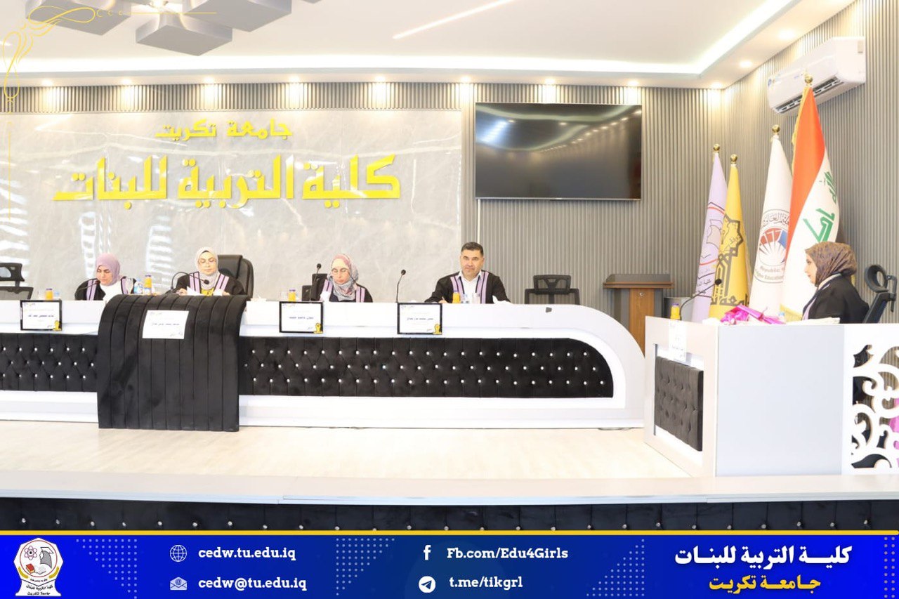 نوقشت في كلية التربية للبنات جامعة تكريت قسم اللغة الإنكليزية يوم الاربعاء الموافق ٢٠٢٤/١٠/٢٣