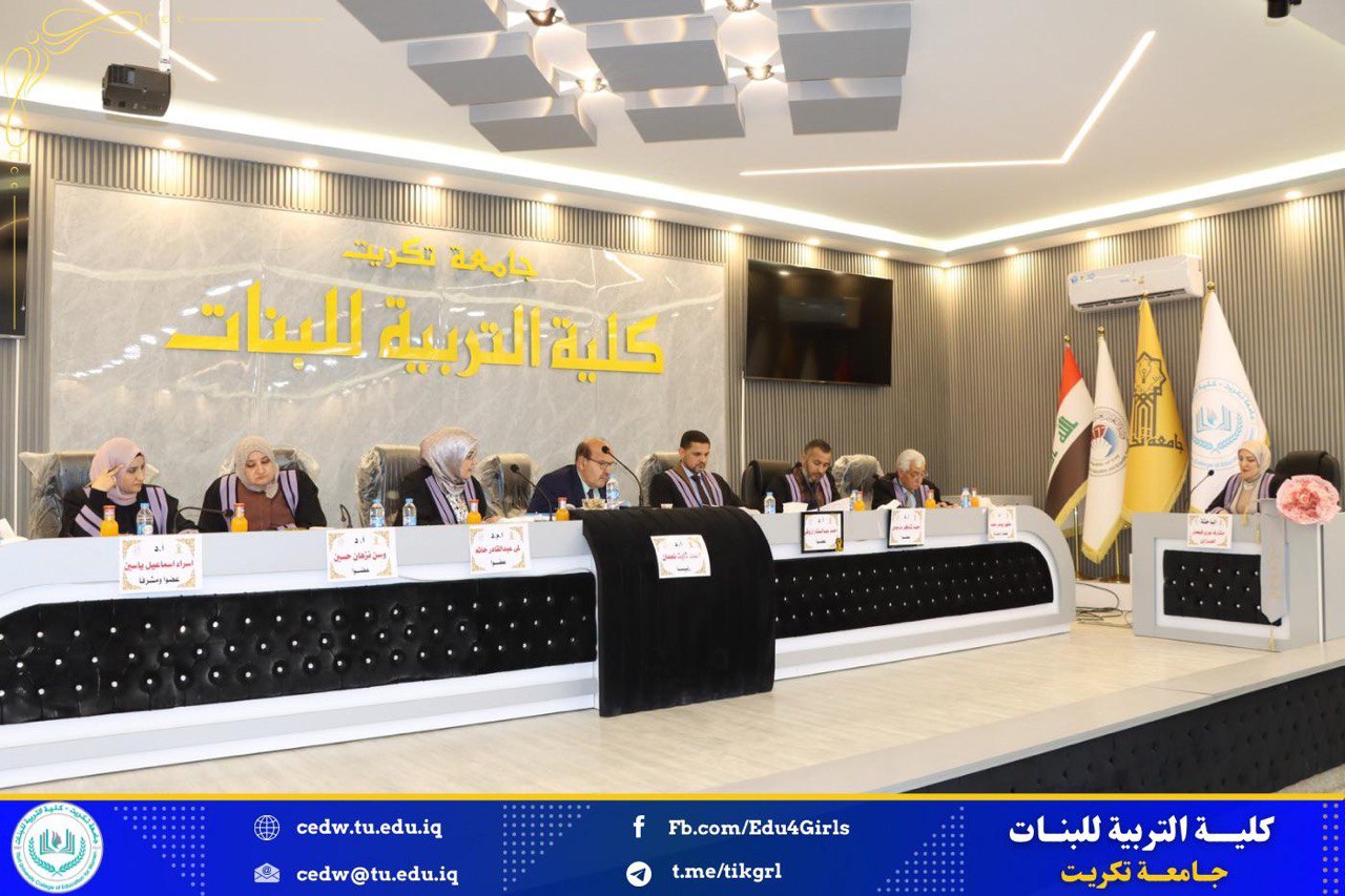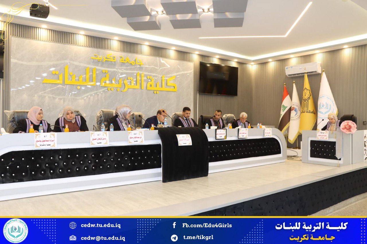 نوقشت في كلية التربية للبنات جامعة تكريت قسم الكيمياء يوم الخميس الموافق ٧ / ١١ / ٢٠٢٤