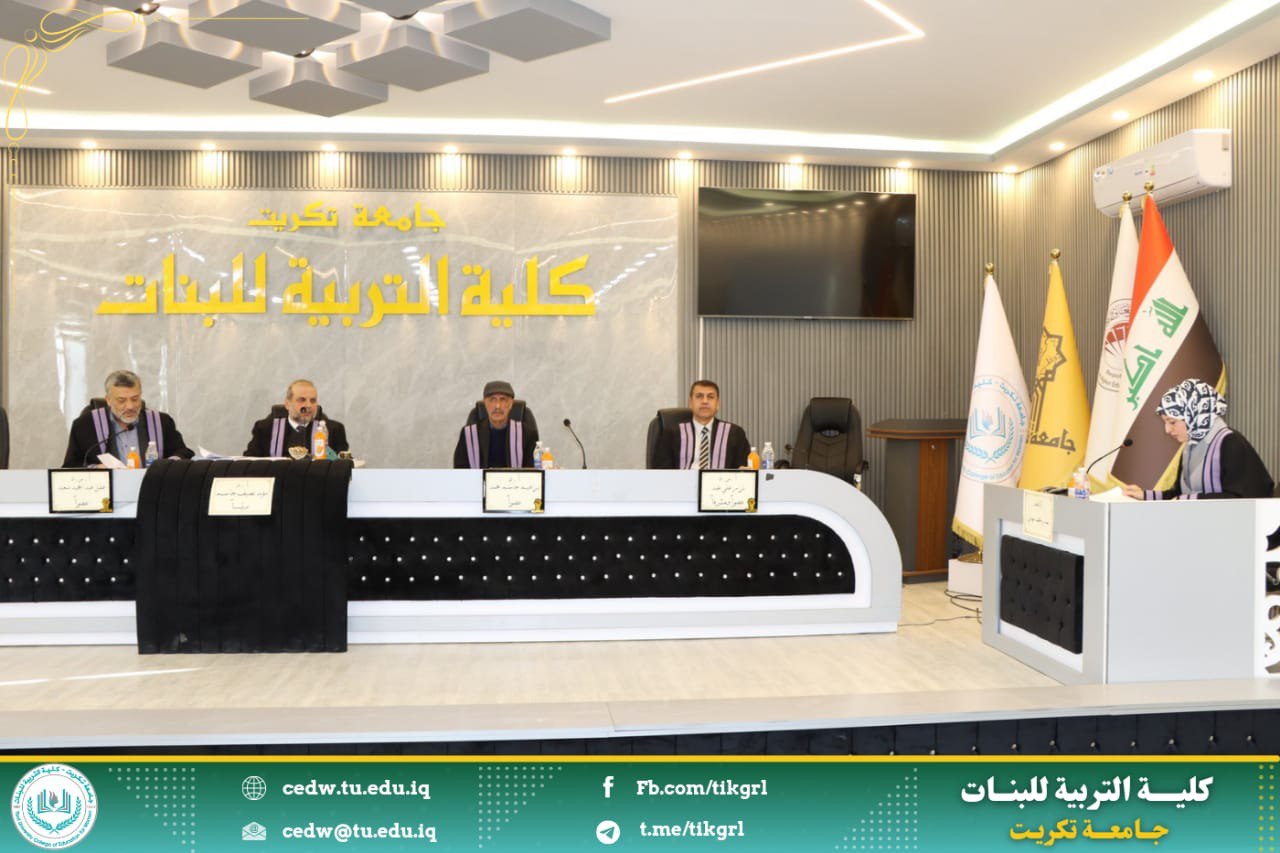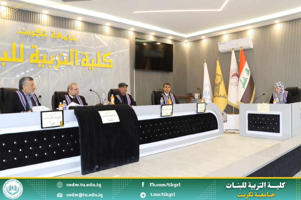 نوقشت في كلية التربية للبنات جامعة تكريت قسم علوم القرآن يوم الخميس الموافق ١٩ / ١٢ / ٢٠٢٤