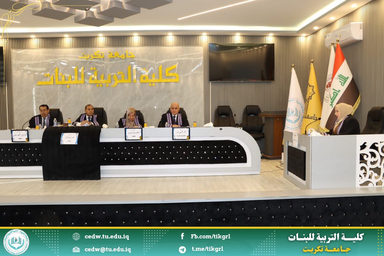 نوقشت في كلية التربية للبنات جامعة تكريت قسم التاريخ يوم الاحد الموافق 22 / 12 / 2024