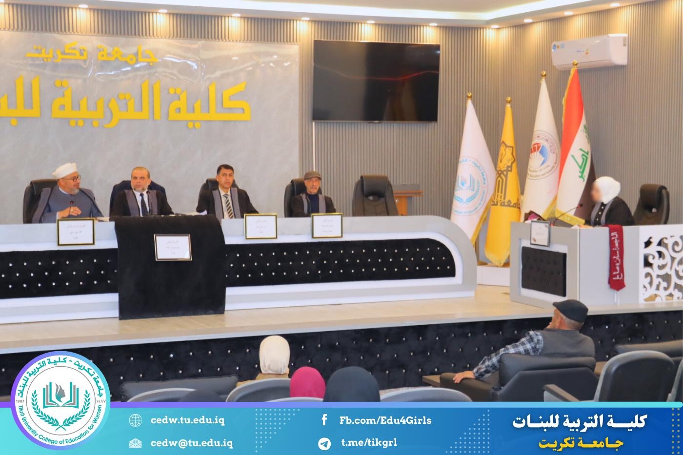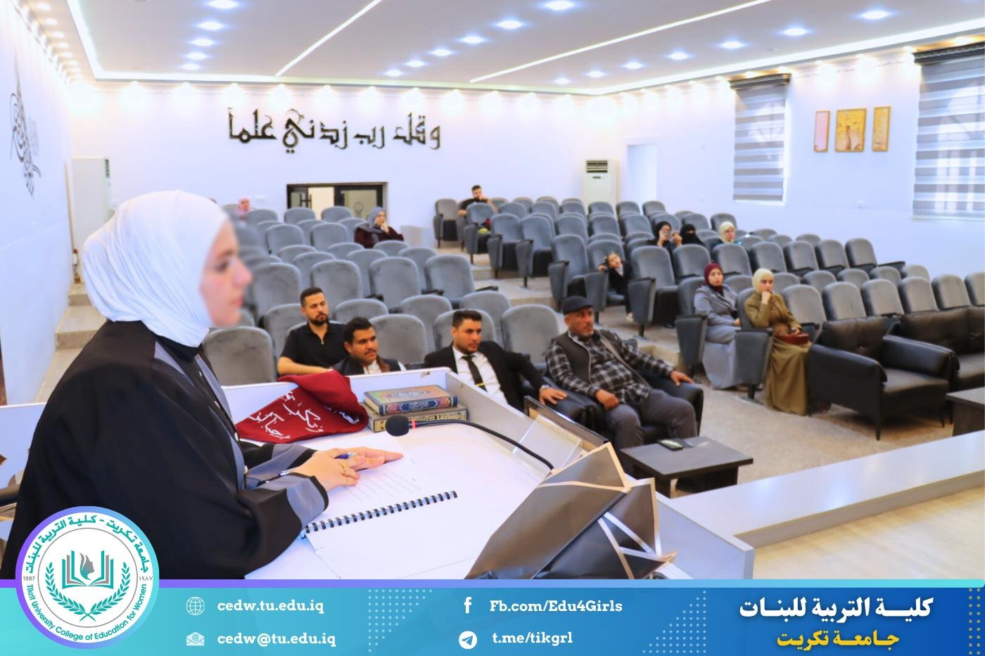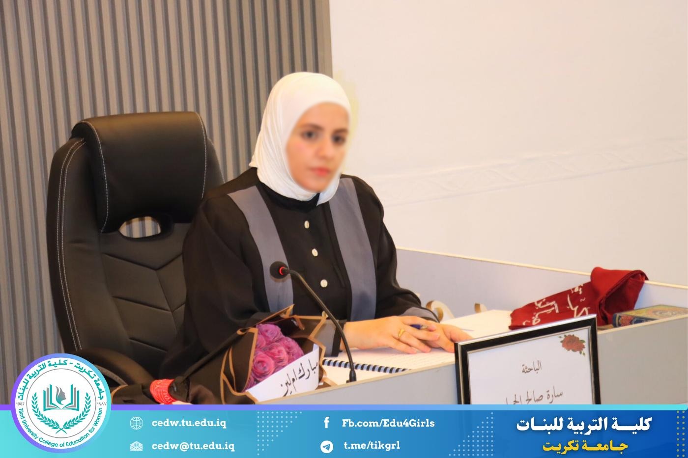 نوقشت في كلية التربية للبنات – قسم علوم القرآن، يوم الثلاثاء الموافق 24 / 2 / 2026، وعلى قاعة المرحوم الأستاذ الدكتور جايد زيدان في عمادة الكلية، رسالة الماجستير المقدّمة من الطالبة سارة صالح حمد، والموسومة: