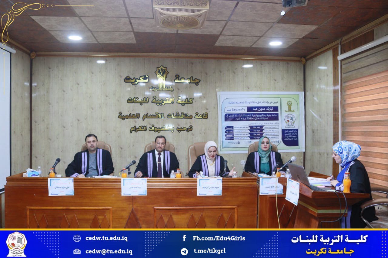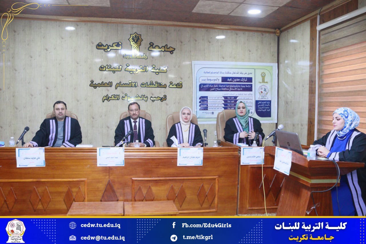 نوقشت في كلية التربية للبنات قسم علوم الحياة يوم الأربعاء الموافق 2024-09-04، وعلى رحاب قاعة السمنار في الأقسام العلمية للكلية، رسالة ماجستير للطالبة تبارك مدين عبد والموسومة *دراسة بيئية ومايكروبيولوجية لمحطة تنقية مياه الشرب في ناحية الإسحاقي/محافظة صلاح الدين