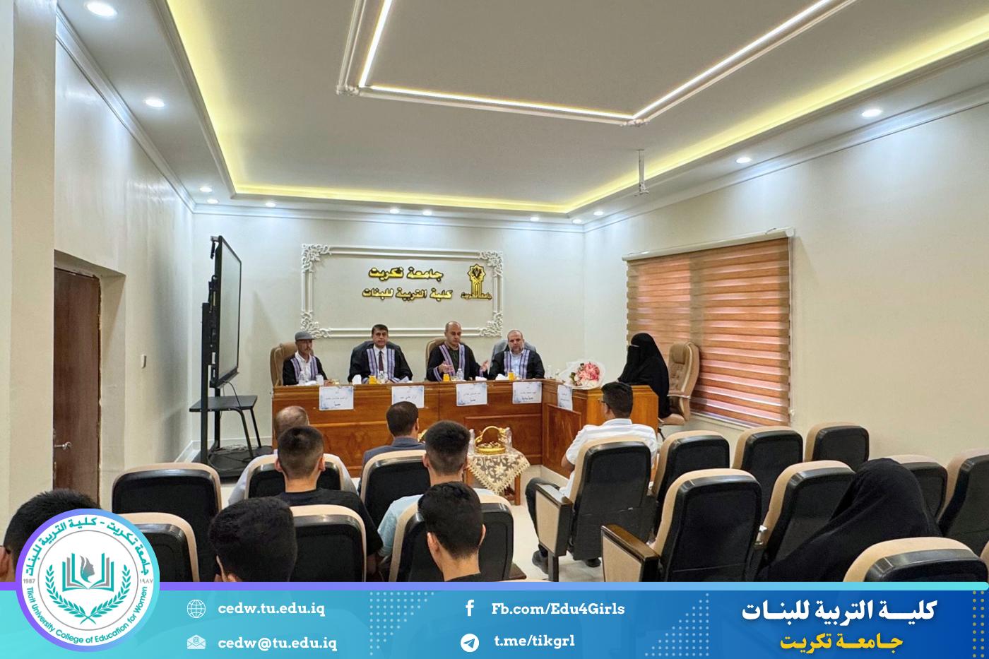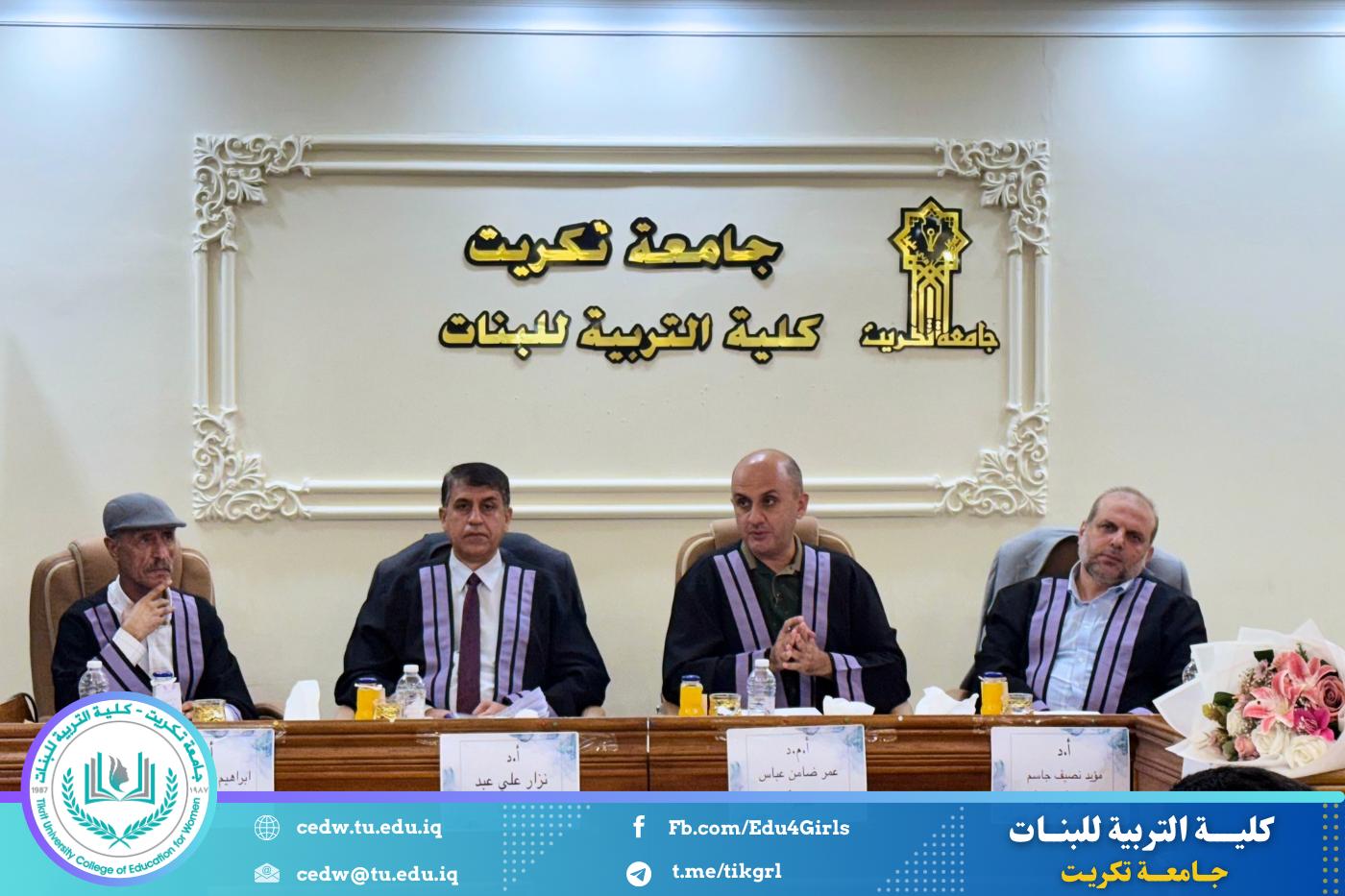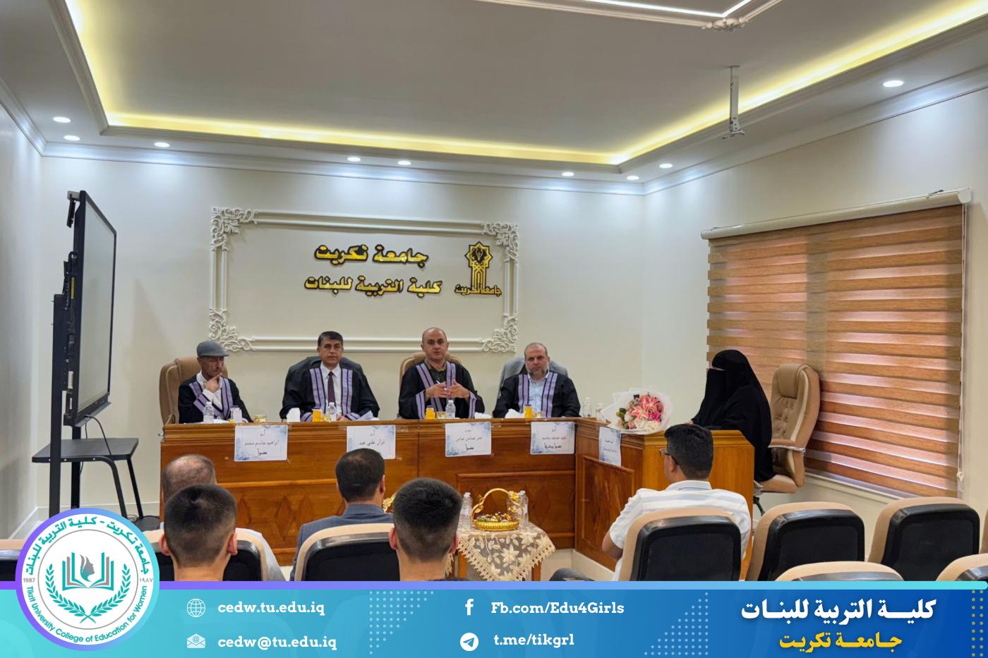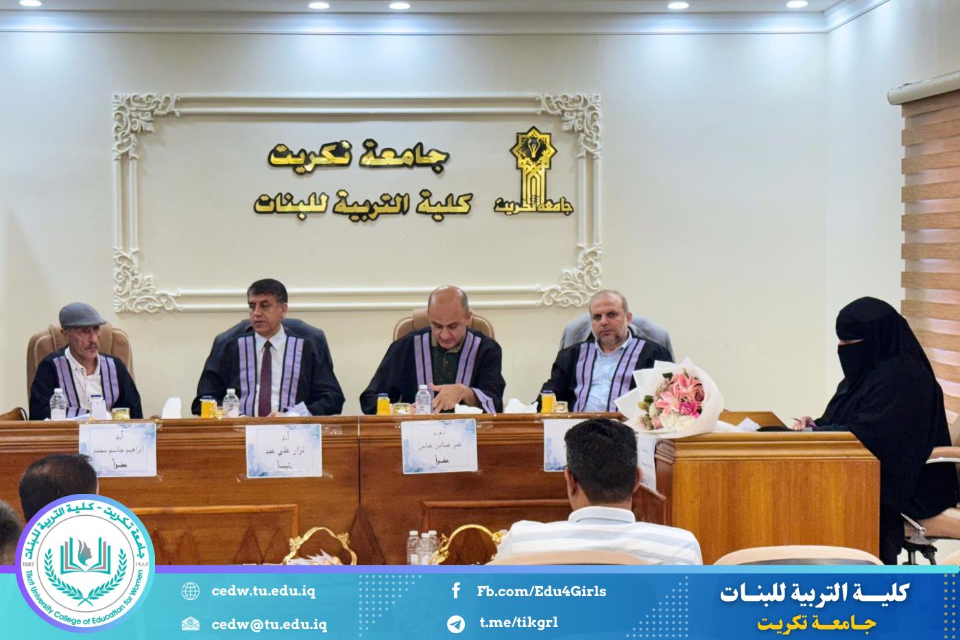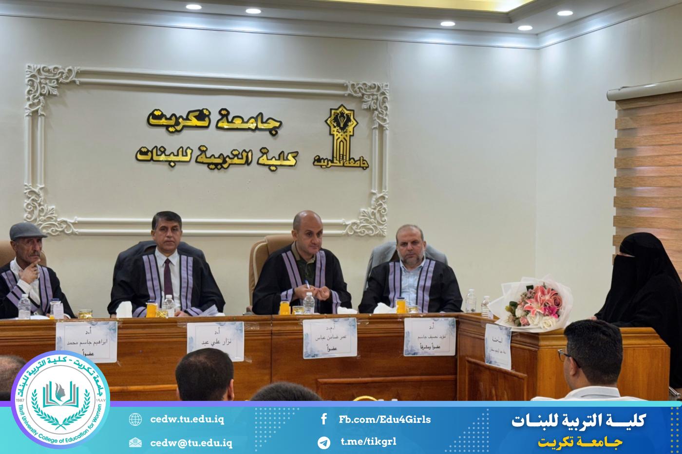 نوقشت في كلية التربية للبنات – قسم علوم القرآن، اليوم الاثنين الموافق 25 / 8 / 2025، على قاعة السمنار في الأقسام العلمية للكلية، رسالة الماجستير المقدمة من الطالبة دعاء عبد الرحيم سلطان، والموسومة: