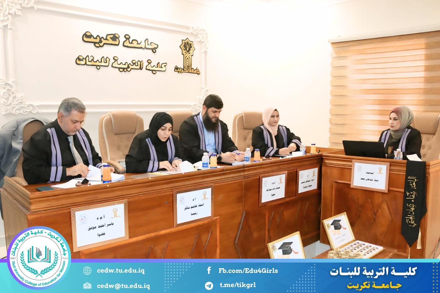 وفي ختام الجلسة، قررت اللجنة قبول الرسالة ومنح الطالبة شفاء شدهان حمد درجة الماجستير في الكيمياء، بعد إجراء التعديلات التي أوصت بها اللجنة