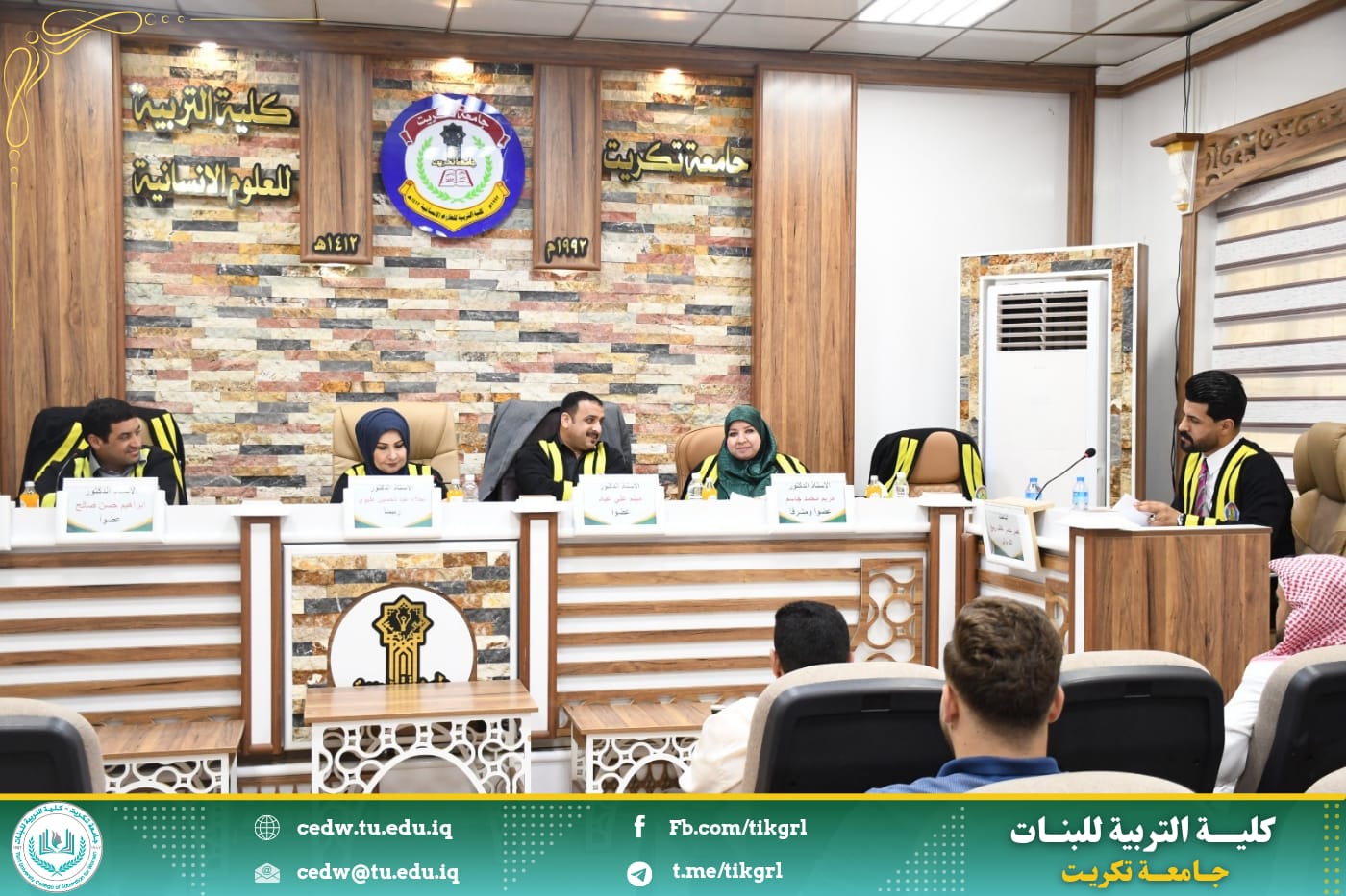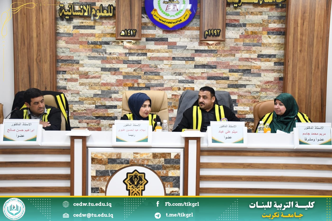 ترأست الأستاذ الدكتورة نجلاء عبدالحسين عليوي عميد كلية التربية للبنات / جامعة تكريت ، لجنة مناقشة رسالة ماجستير خارجية للطالب (ناصر خضر خلف الكربولي)، في كلية التربية للعلوم الانسانية - قسم اللغة العربية والموسومة (الثنائيَّات الضِديَّة في شعر الطغرائي (ت: ٥٢٣هـ)، والتي نوقشت صباح اليوم الموافق٢٧ نيسان ٢٠٢٥