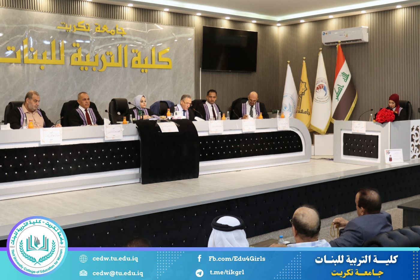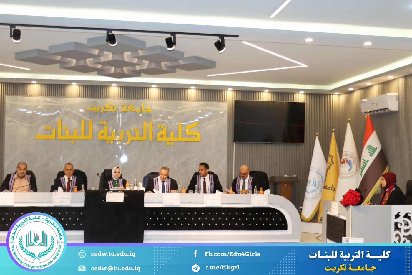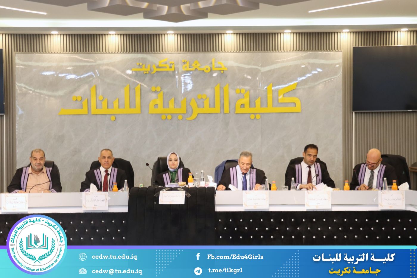 وفي ختام الجلسة، قررت اللجنة قبول الأطروحة ومنح الطالبة سجى ناظم محمود درجة الدكتوراه في التاريخ، بعد إجراء التعديلات التي أوصت بها اللجنة