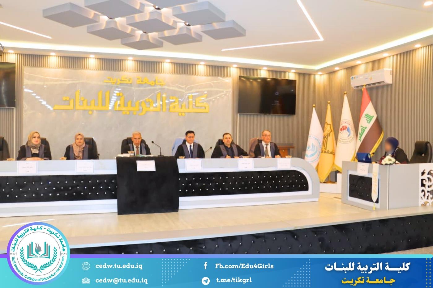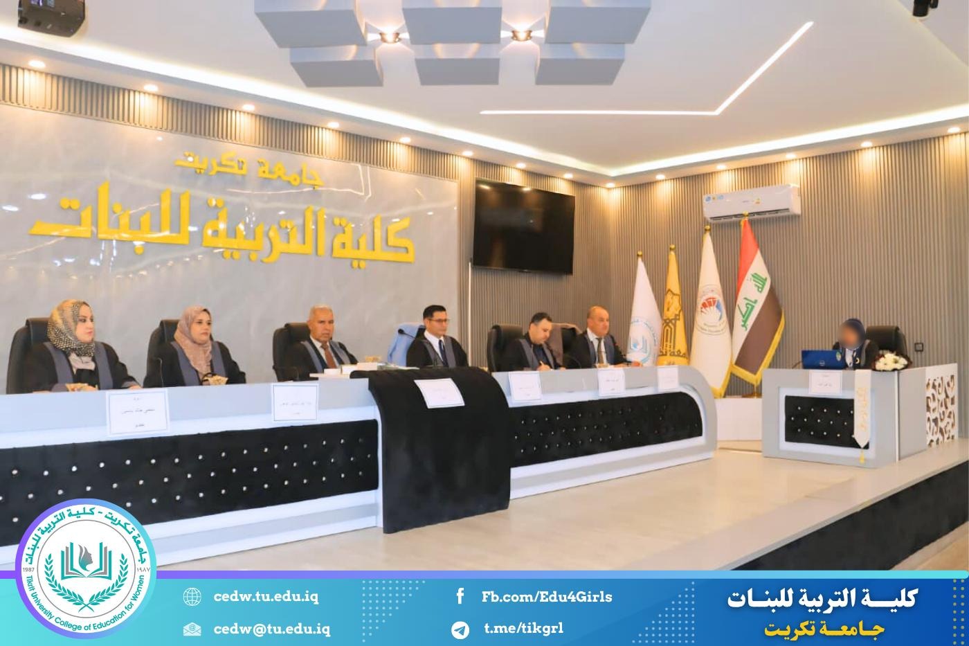 نوقشت في كلية التربية للبنات – قسم علوم الحياة بجامعة تكريت، يوم الثلاثاء الموافق 28 / 10 / 2025، على قاعة المرحوم الأستاذ الدكتور جايد زيدان في عمادة الكلية، أطروحةُ الدكتوراه المقدَّمة من الطالبة ريام غني أحمد، والموسومة: