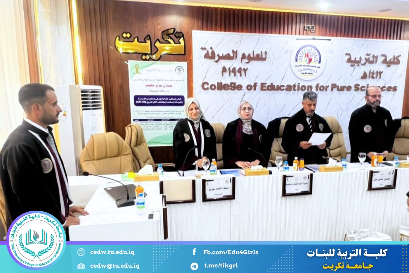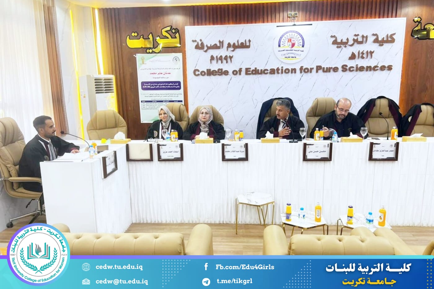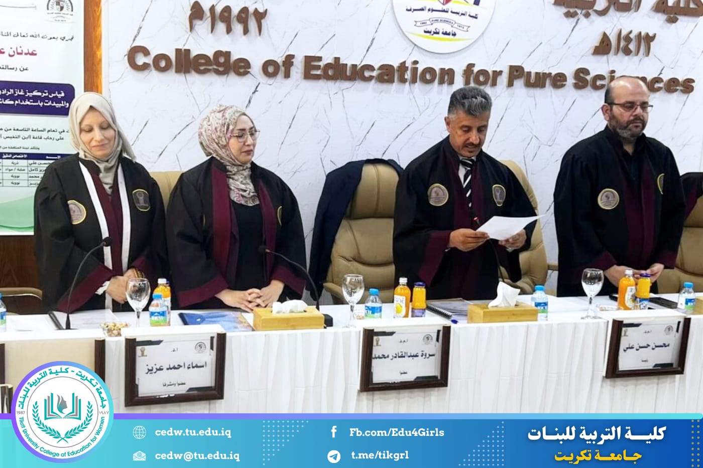 شاركت الأستاذ المساعد الدكتورة سروة عبدالقادر محمد، التدريسية في قسم الرياضيات بكلية التربية للبنات – جامعة تكريت، في عضوية لجنة مناقشة خارجية لرسالة ماجستير مقدَّمة من الطالب (عدنان عابر محمد) في قسم الفيزياء بكلية التربية للعلوم الصرفة – جامعة تكريت، والموسومة:
