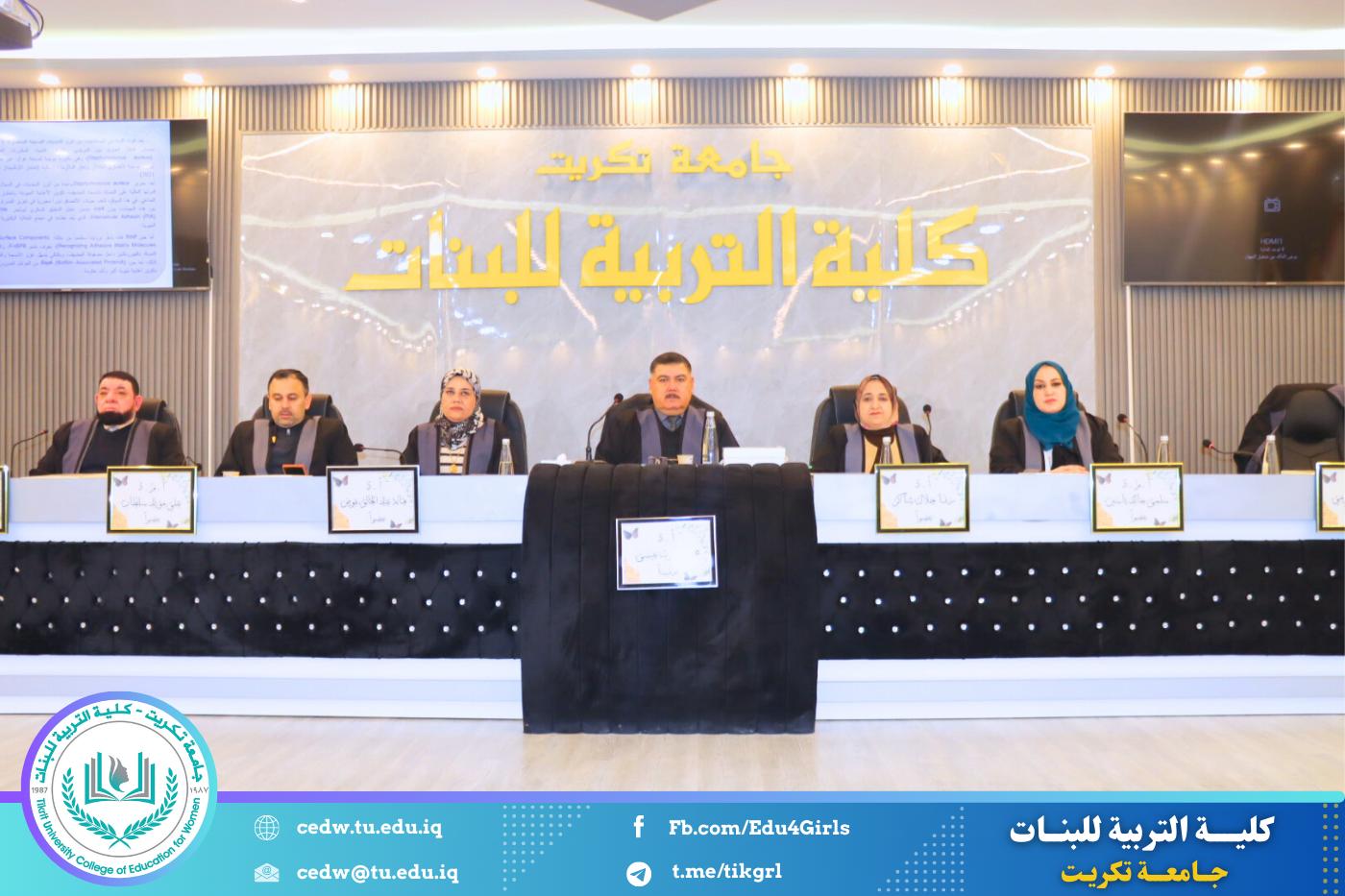 نوقشت في كلية التربية للبنات – قسم علوم الحياة، يوم الثلاثاء الموافق 3 / 2 / 2026، وعلى قاعة المرحوم الأستاذ الدكتور جايد زيدان في عمادة الكلية، أطروحة الدكتوراه المقدّمة من الطالبة وسن صباح محمد، والموسومة: