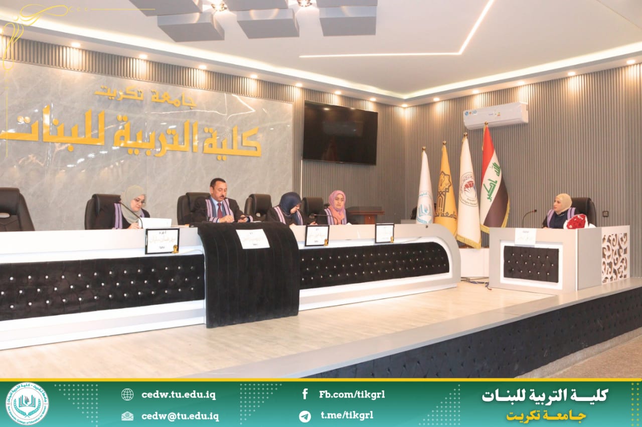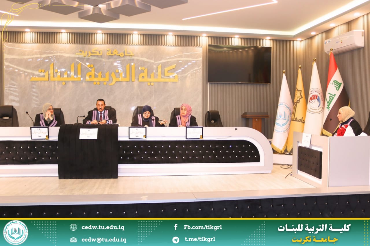 نوقشت في كلية التربية للبنات /جامعة تكريت - قسم اللغة العربية اليوم الثلاثاء الموافق ٤ / ٣ / ٢٠٢٥ ، وعلى رحاب قاعة المرحوم الأستاذ الدكتور جايد زيدان