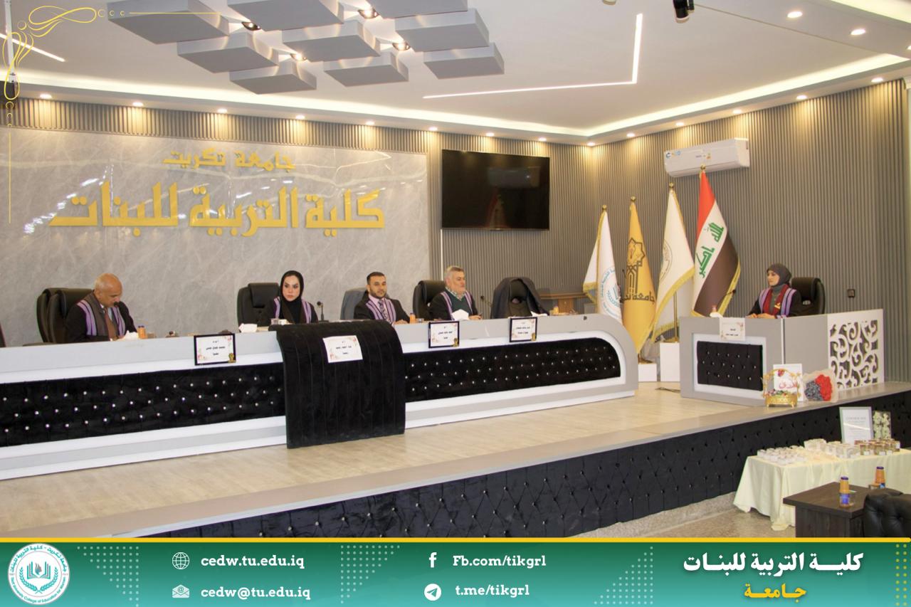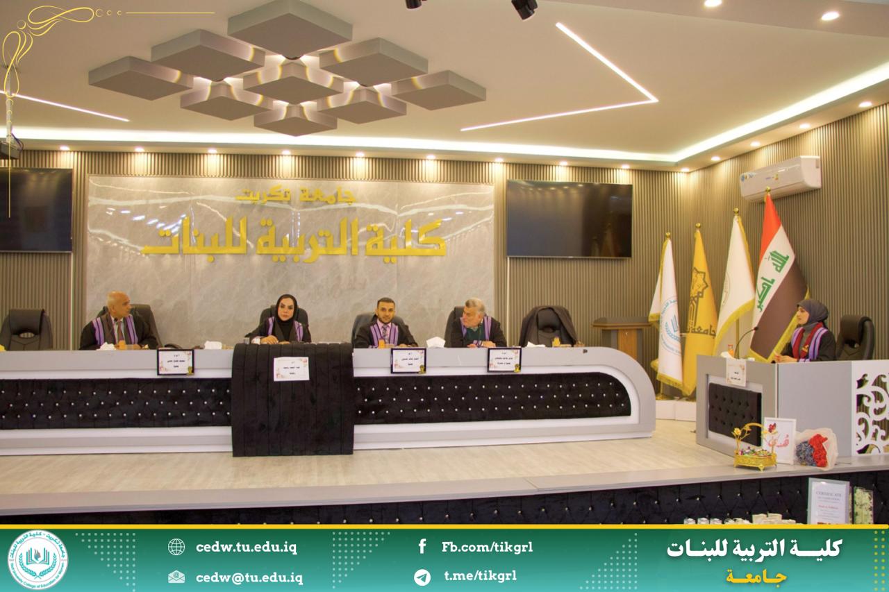 نوقشت في كلية التربية للبنات جامعة تكريت قسم اللغة الإنكليزية، اليوم الخميس الموافق ٢٠ / ٢ / ٢٠٢٥ ، وعلى رحاب قاعة المرحوم الأستاذ الدكتور جايد زيدان