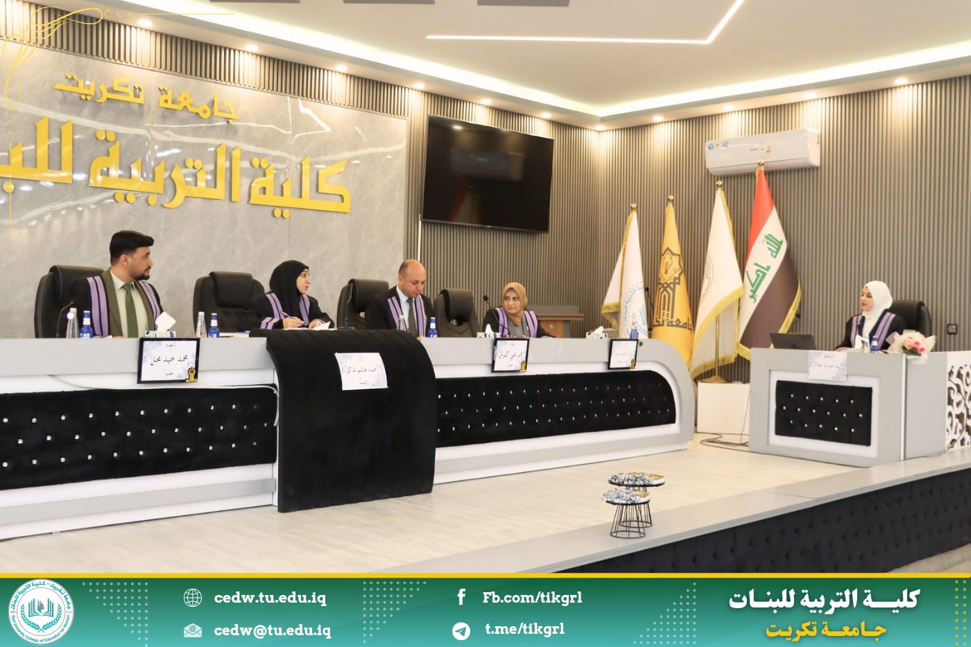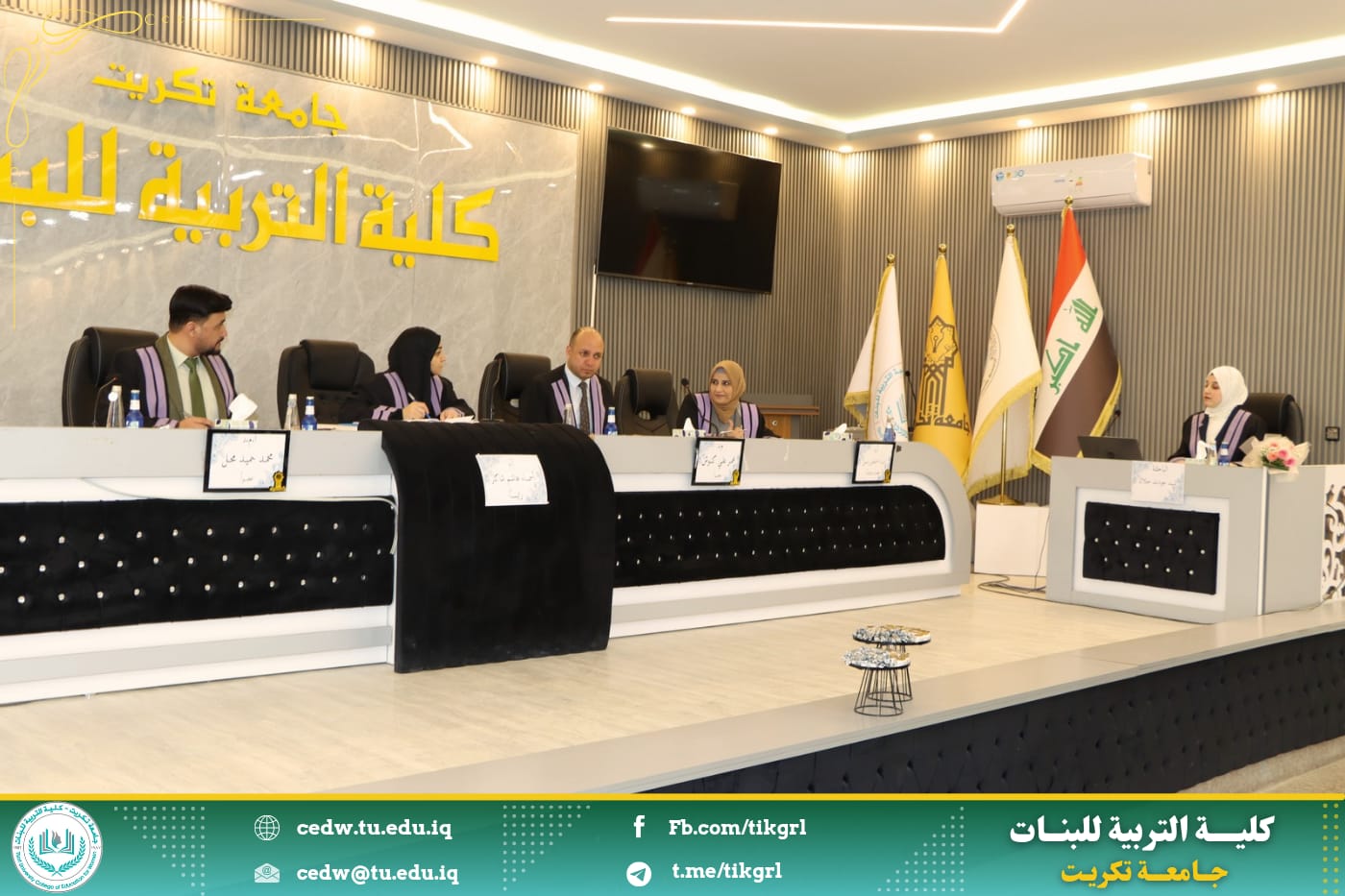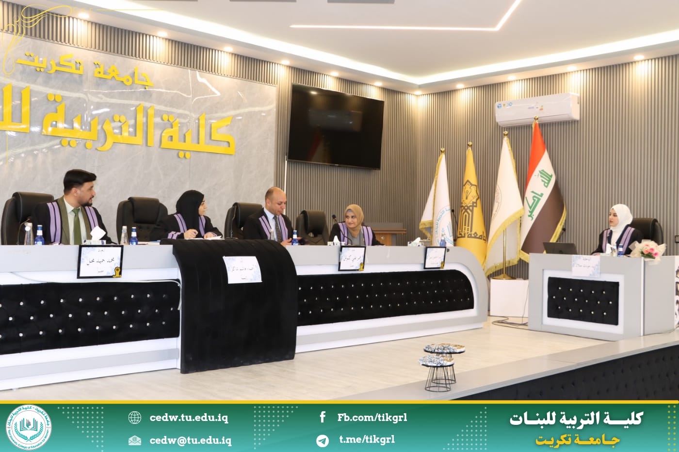 نوقشت في كلية التربية للبنات جامعة تكريت قسم الكيمياء ، اليوم الثلاثاء الموافق ٢٥ / ٢ / ٢٠٢٥ ، وعلى رحاب قاعة المرحوم الأستاذ الدكتور جايد زيدان