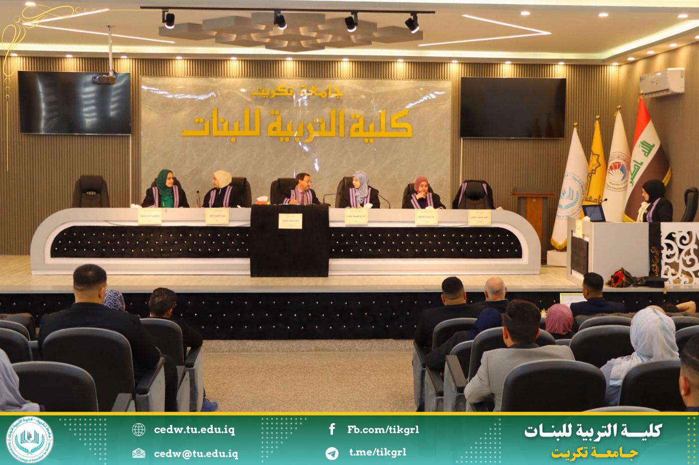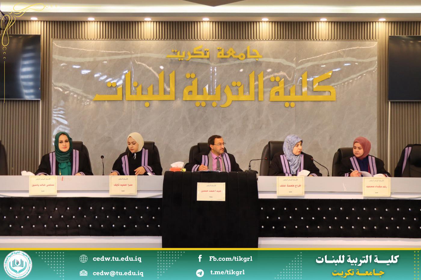 نوقشت في كلية التربية للبنات جامعة تكريت قسم علوم الحياة ، اليوم الاحد الموافق ١٦ / ٣ / ٢٠٢٥ ، وعلى رحاب قاعة المرحوم الأستاذ الدكتور جايد زيدان