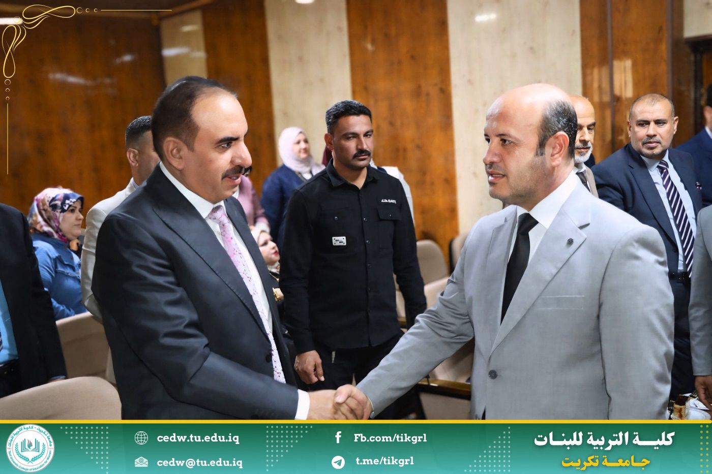 بحضور الأستاذ الدكتور وعد محمود رؤوف رئيس جامعة تكريت، والأستاذ الدكتورة نجلاء عبدالحسين عليوي عميد كلية التربية للبنات، الأستاذ اسماعيل الهلوب عضو مجلس محافظة صلاح الدين