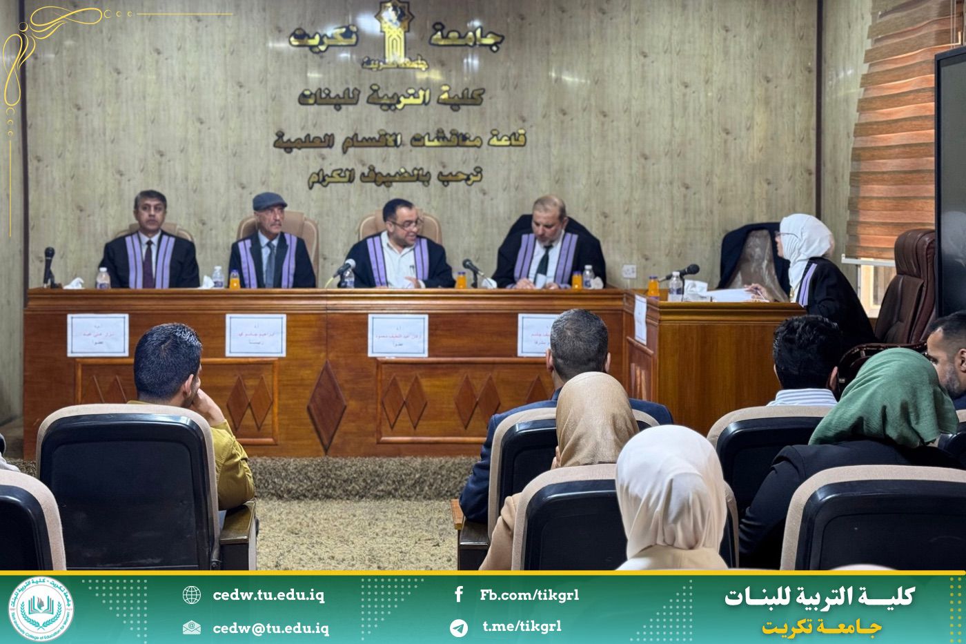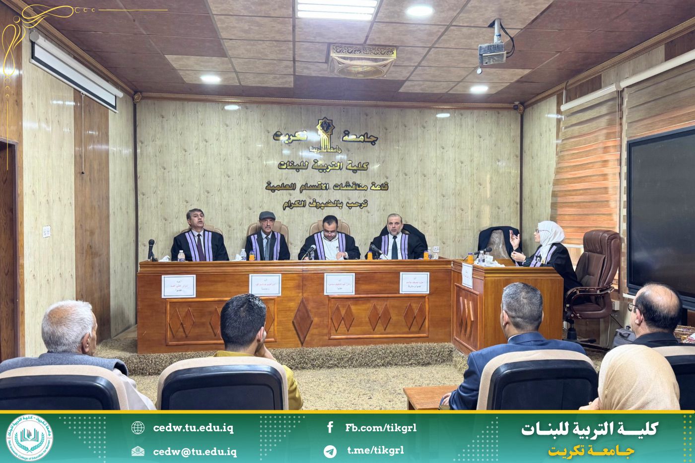 جرت مناقشة طالبة الماجستير ( رنا عيسى محمود) في قسم علوم القرآن/ كلية التربية للبنات - جامعة تكريت عن رسالتها الموسومة ( مَسَائِلُ الشَّكِ فِي كِتَابِ المَجْمُوعِ شَرْحِ المُهَذَّبِ لِلْإِمَامِ أَبِي إِسْحَاقَ الشِّيرَازِي (ت 476 هـ) تَأْلِيفُ الإِمَامِ أبِي زَكَريَّا النَّوَوِي (ت 676 هـ) بَابُ الطَّهَارَةِ - دِرَاسَةٌ فِقْهِيَّةٌ مُقَارَنَةٌ )، اليوم الاثنين الموافق ١٤ / ٤ / ٢٠٢٥ ، على رحاب قاعة المرحوم الأستاذ الدكتور جايد زيدان