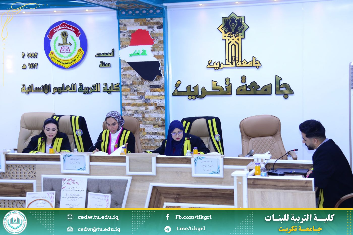 ضمن إطار التعاون العلمي والأكاديمي بين الجامعات العراقية، شاركت الأستاذ الدكتورة أوفى حسين محمد، رئيس قسم اللغة الإنكليزية في كلية التربية للبنات، عضواً في لجنة مناقشة رسالة ماجستير في تخصص الأدب الإنكليزي، بكلية التربية للعلوم الإنسانية – جامعة تكريت.