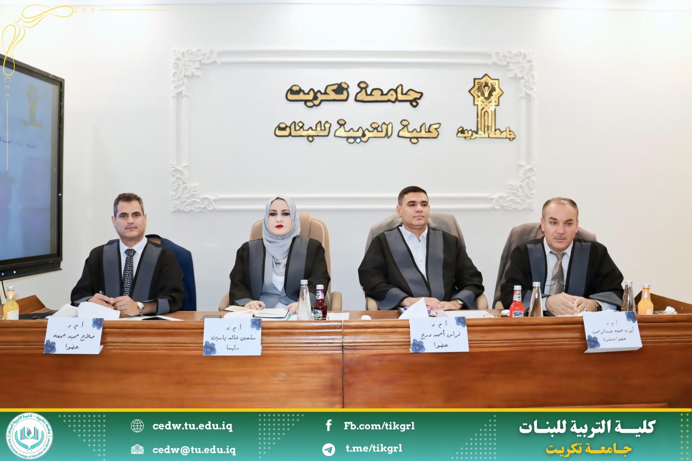 نوقشت في كلية التربية للبنات – جامعة تكريت، قسم علوم الحياة، صباح يوم الثلاثاء الموافق ٢٧ تموز ٢٠٢٥، رسالة الماجستير المقدَّمة من الطالبة (زينب محمد مديد)، والموسومة: