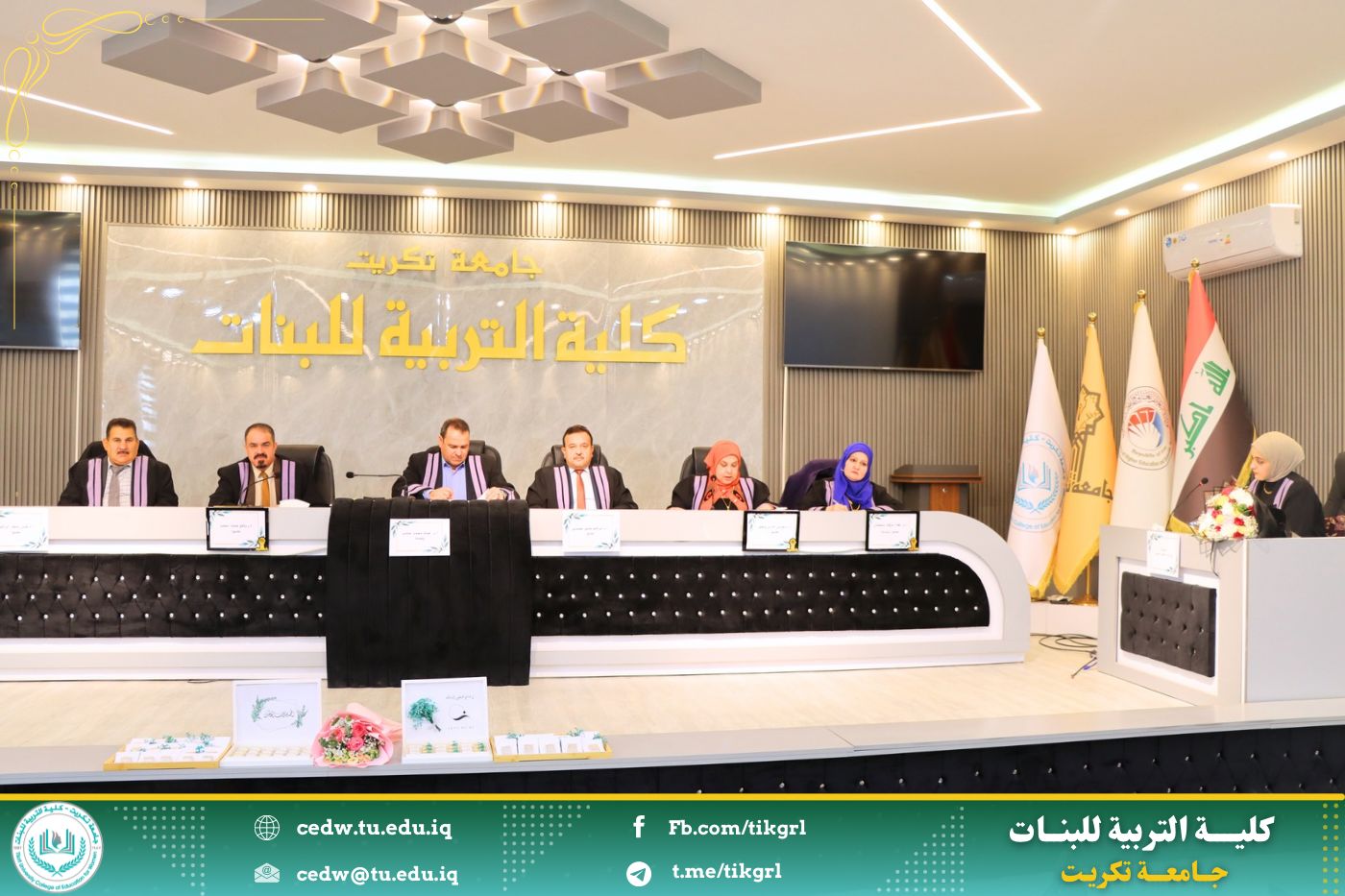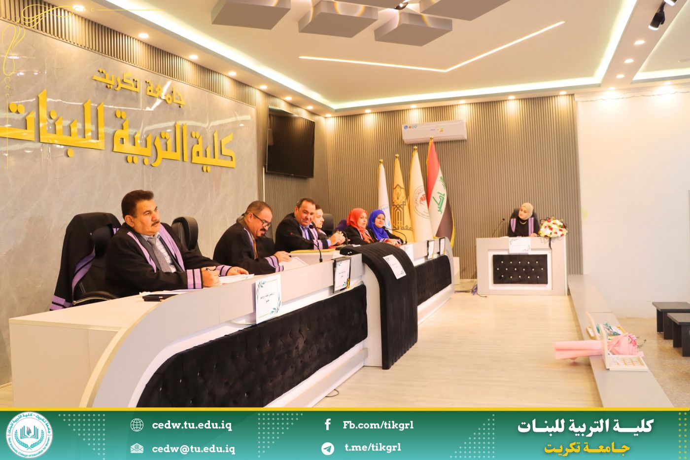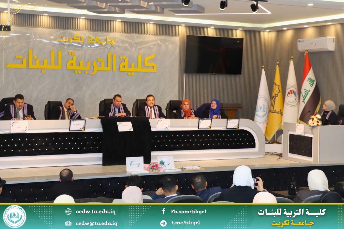 نوقشت في كلية التربية للبنات جامعة تكريت قسم اللغة العربية، اليوم الخميس الموافق ٦ / ٣ / ٢٠٢٥ ، وعلى رحاب قاعة المرحوم الأستاذ الدكتور جايد زيدان