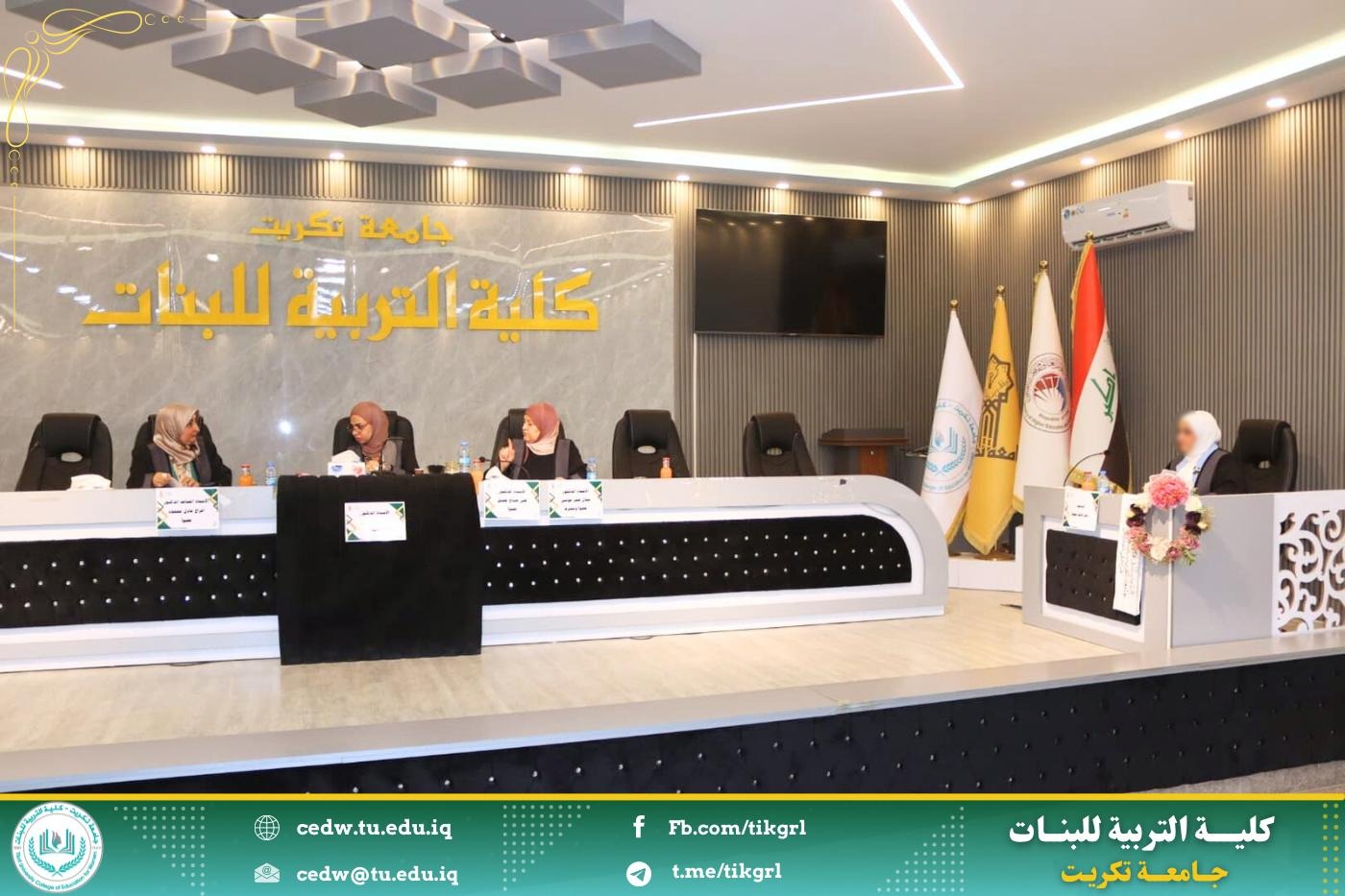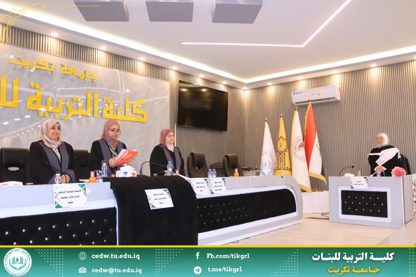 نوقشت في كلية التربية للبنات – جامعة تكريت، قسم اللغة الإنجليزية، اليوم الأربعاء الموافق 6 / 8 / 2025، وعلى قاعة المرحوم الأستاذ الدكتور جايد زيدان في عمادة الكلية، رسالة الماجستير المقدّمة من الطالبة رسل قاسم جمعة، والموسومة: