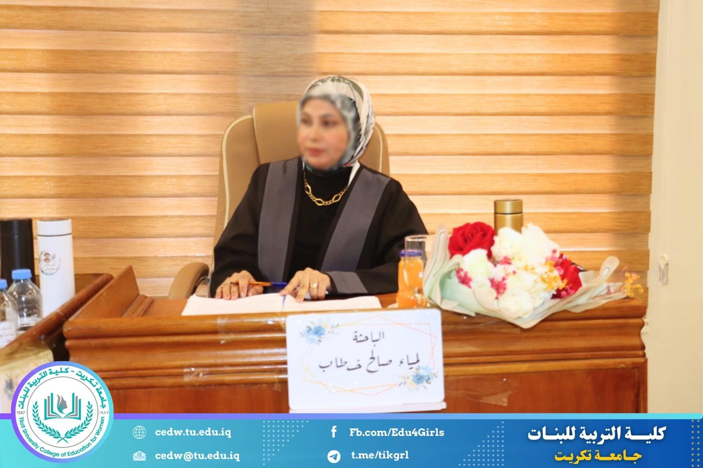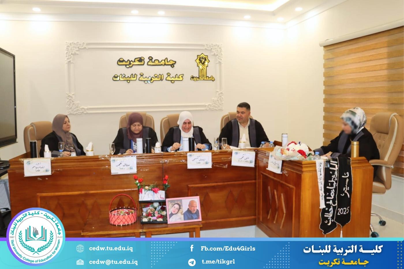 نوقشت في كلية التربية للبنات – قسم اللغة الإنجليزية، يوم السبت الموافق 6/ 9 / 2025، على قاعة السمنار في الأقسام العلمية للكلية، رسالة الماجستير المقدمة من الطالبة لمياء صالح خطاب، والموسومة: