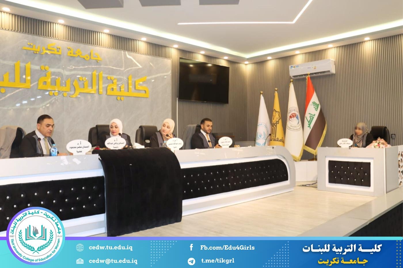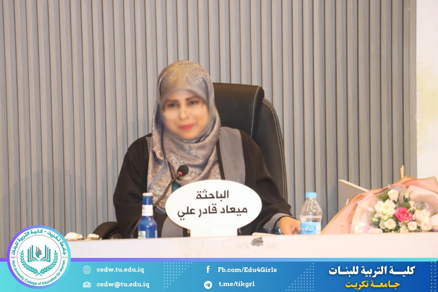 نوقشت في كلية التربية للبنات – قسم اللغة الإنكليزية، اليوم السبت الموافق 6 / 9 / 2025، على قاعة المرحوم الأستاذ الدكتور جايد زيدان في عمادة الكلية، رسالة الماجستير المقدمة من الطالبة ميعاد قادر علي، والموسومة: