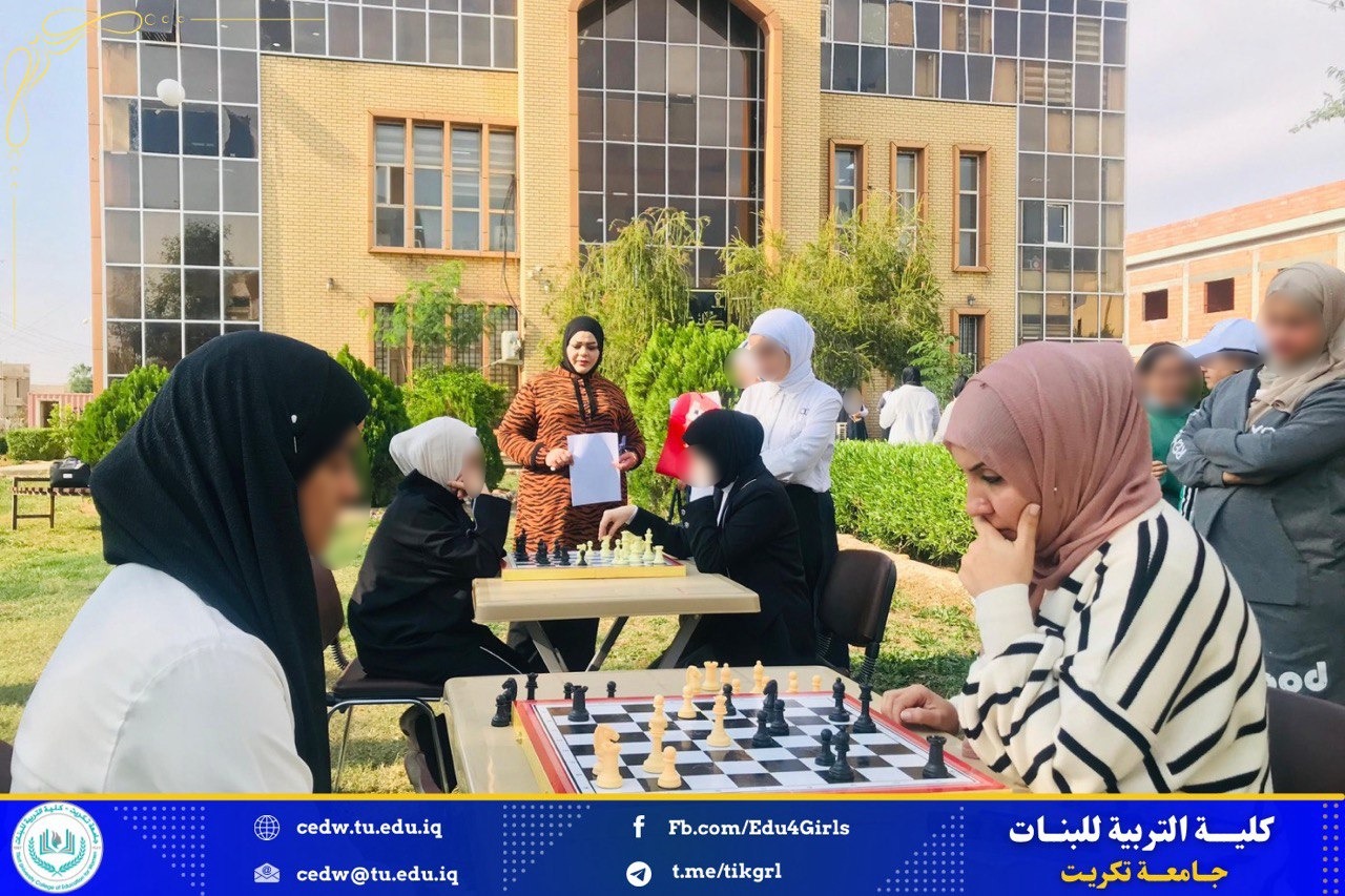 برعاية السيدة عميد كلية التربية للبنات الاستاذ الدكتورة نجلاء عبدالحسين عليوي ومتابعة شعبة النشاطات الطلابية في الكلية وبتعاون مع المديرية العامة لتربية صلاح الدين قسم النشاط الرياضي استضافت كلية التربية للبنات بطولة الشطرنج وكرة المنضدة بمشاركة نخبة من الطالبات من مختلف الاقسام وسط اجواء من التنافس والابداع يوم الثلاثاء الموافق ١٢/ ١١/ ٢٠٢٤