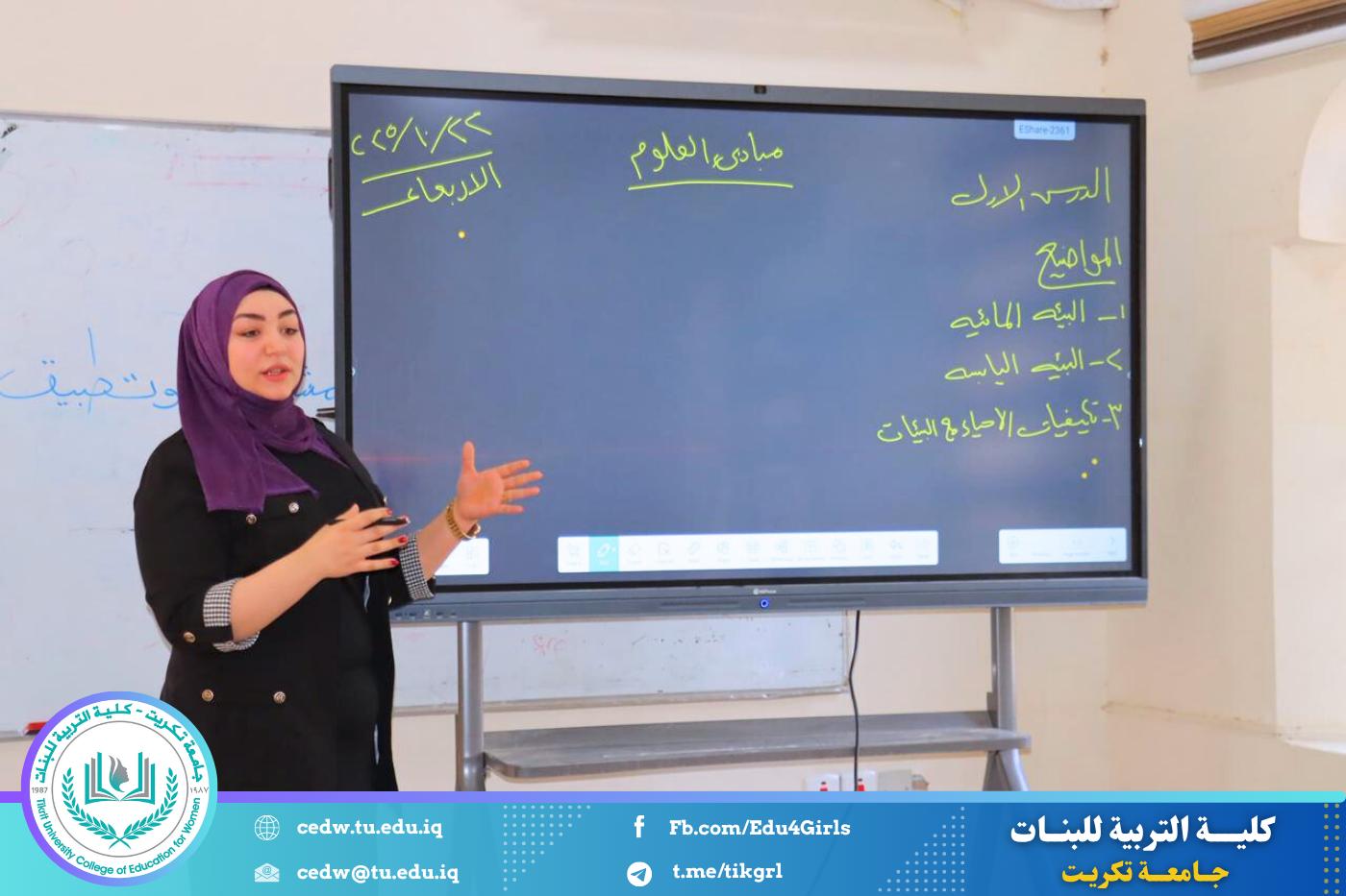 ضمن متطلبات مادة المشاهدة والتطبيق في قسم الاقتصاد المنزلي – كلية التربية للبنات / جامعة تكريت، قدّمت طالبات المرحلة الرابعة صباح اليوم الأربعاء الموافق ٢٢ تشرين الأول ٢٠٢٥ محاضرة تطبيقية مميزة في مختبر التربية العملية، جسّدن من خلالها مهاراتهن التربوية والتعليمية المكتسبة خلال فترة دراستهن الجامعية.