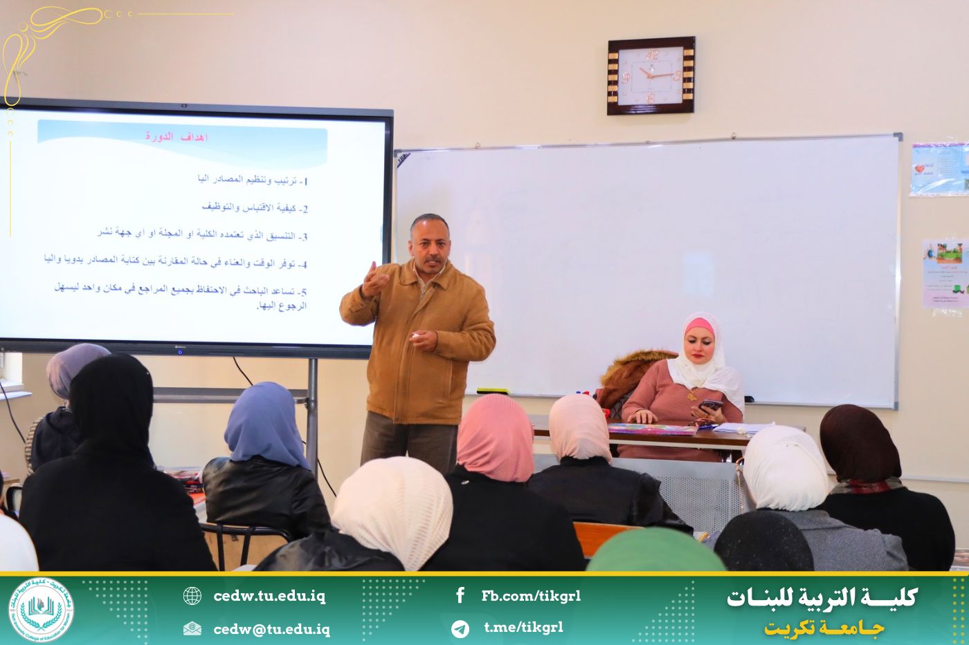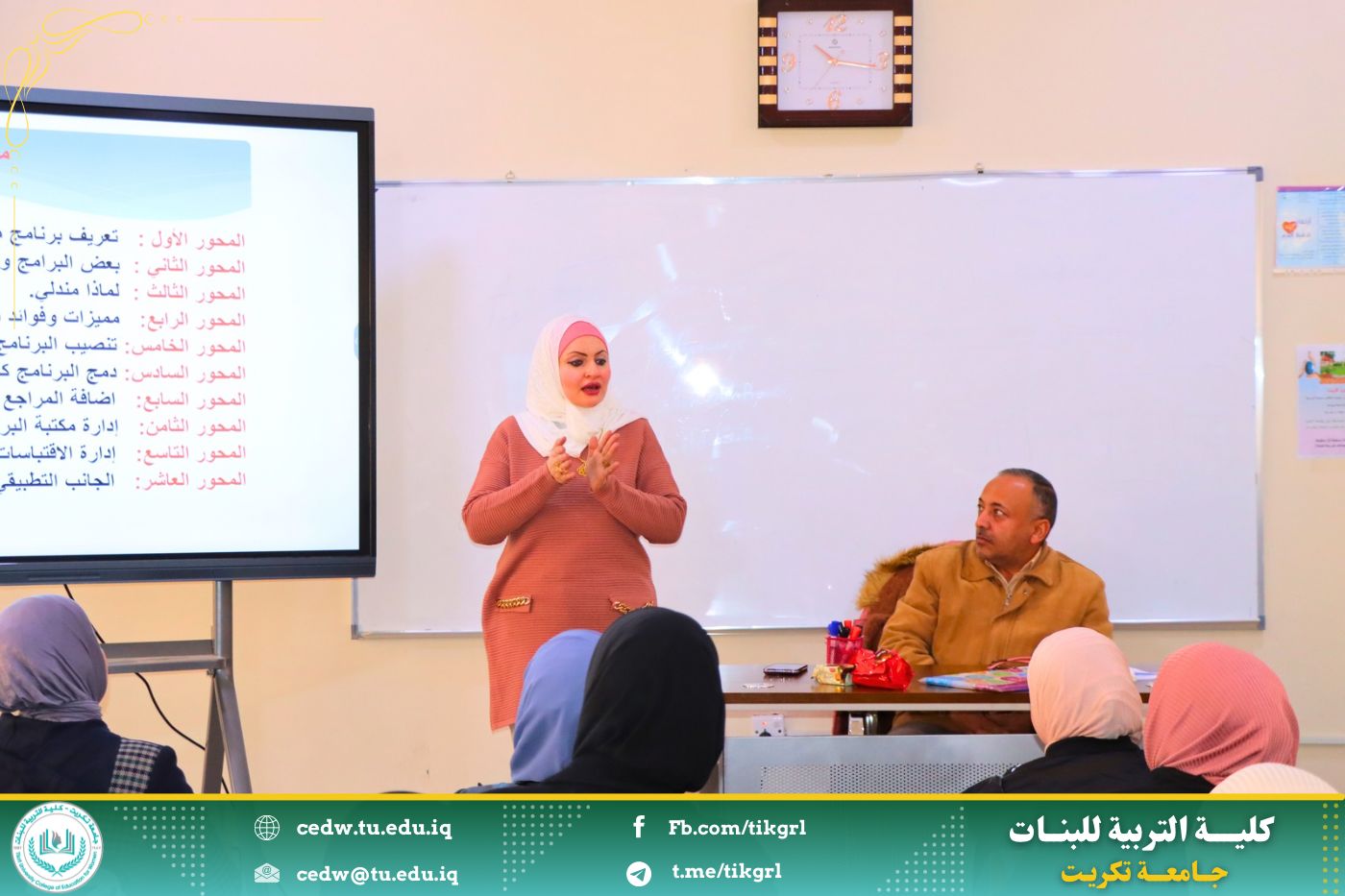 اقام مركز التعليم المستمر بالتعاون مع كلية التربية للبنات قسم الرياضيات دورة بعنوان : تطبيق مندلي في كتابة البحوث والأطاريح، وذلك ليومي الاثنين والثلاثاء الموافق ١٠ - ١١ / ٢ / ٢٠٢٥ على رحاب قاعة المرحلة الثالثة - قسم رياضيات