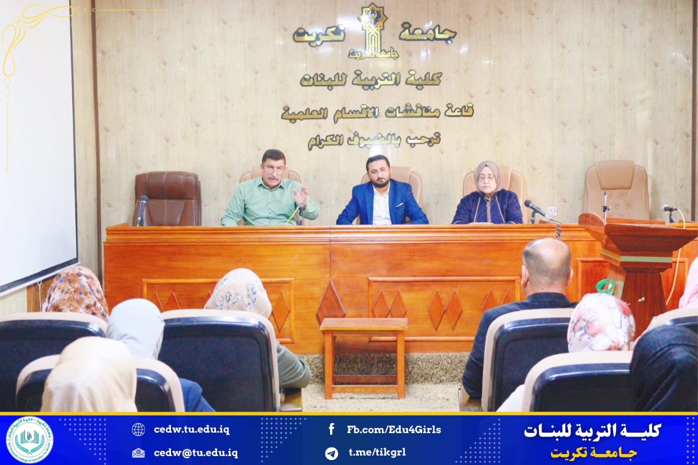 برعاية الأستاذ الدكتور وعد محمود رؤوف المحترم رئيس جامعة تكريت وبإشراف الأستاذ الدكتورة نجلاء عبدالحسين عليوي المحترمة عميد كلية التربية للبنات اقامت وحدة الارشاد بالتعاون مع قسم العلوم التربوية والنفسية ندوة بعنوان : (العوامل النفسية والاجتماعية ودورها في الحد من التطرف الفكري) في اليوم الاحد الموافق 24/ 11/ 2024 على قاعة السمنار في بناية الأقسام العلمية