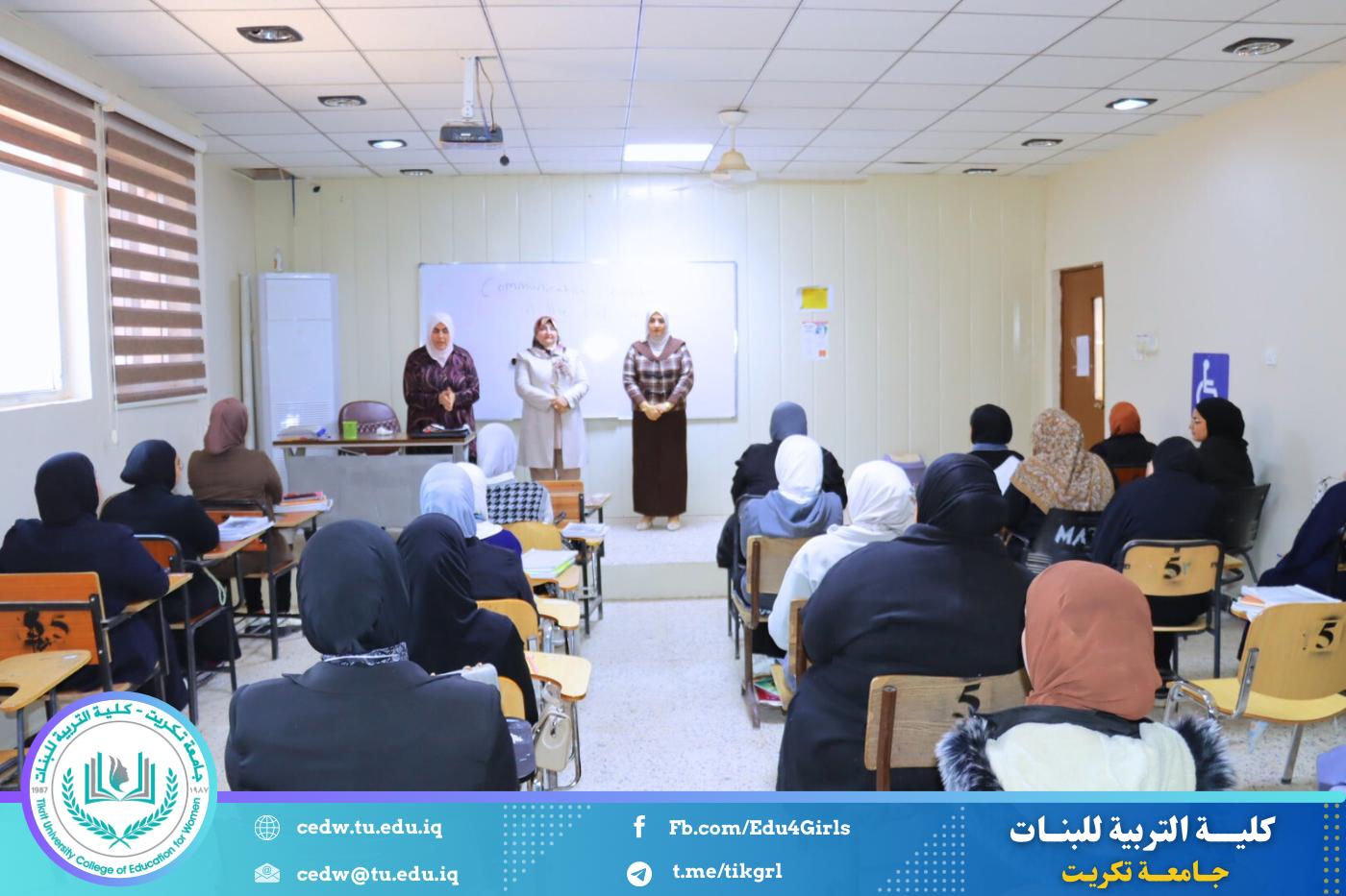 أقامت كلية التربية للبنات – قسم اللغة الإنكليزية، بالتعاون مع مركز التعليم المستمر في جامعة تكريت، دورة تدريبية بعنوان (Communicative Activities in the EFL Classroom)، وذلك يومي الثلاثاء والأربعاء الموافق 10–11 / 3 / 2026، في قاعات قسم اللغة الإنكليزية.