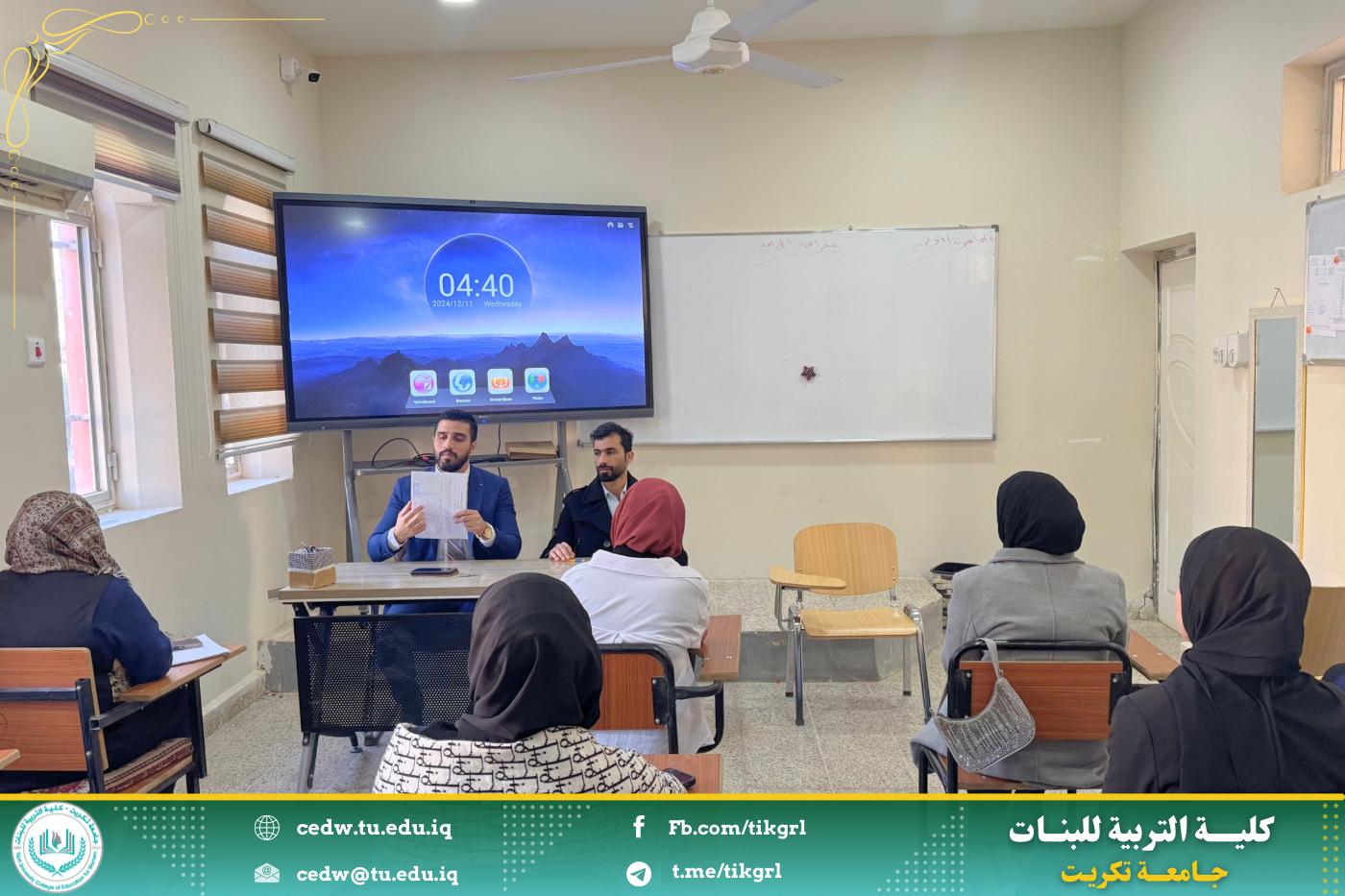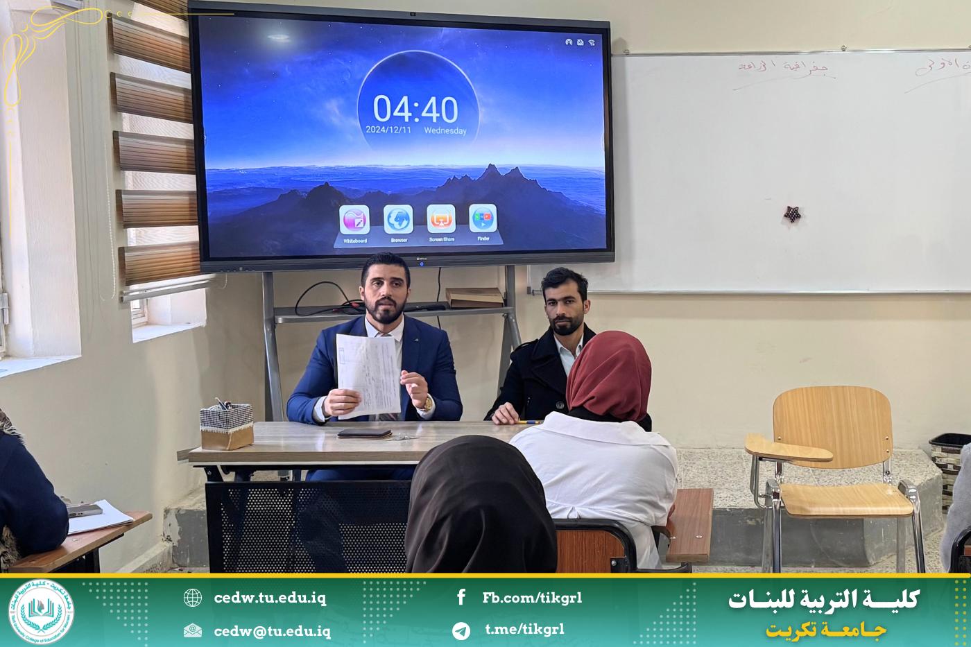 في يوم الأربعاء والخميس الموافق 11-12/ 12/ 2024 على قاعة قسم الجغرافية المرحلة الثالثة