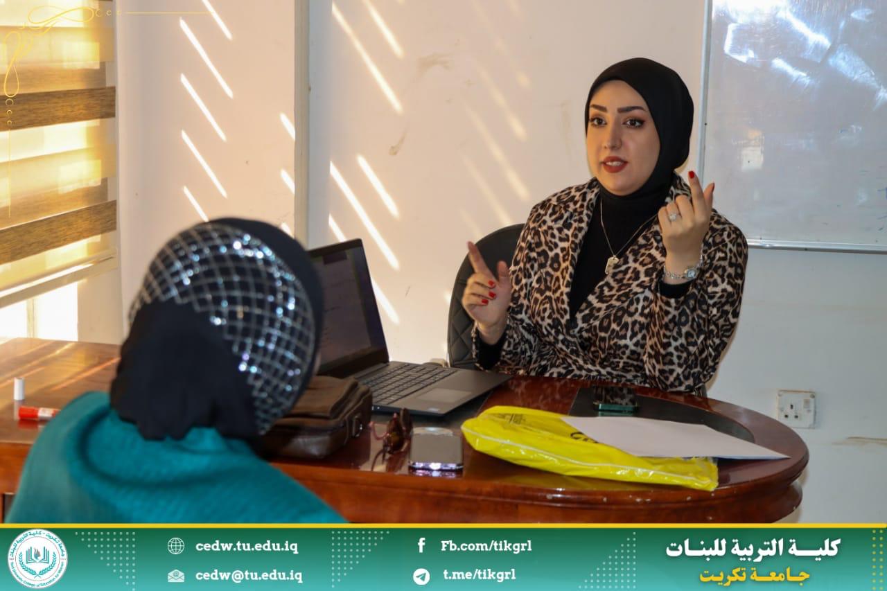 حيث قدمت الطالبة اسيل علاء عواد تحت اشراف الاستاذ الدكتور نبيل عز الدين عارف في اليوم الاحد الموافق 23 / 12/ 2024 على القاعة الدراسية لقسم الرياضيات وكالاتي:
