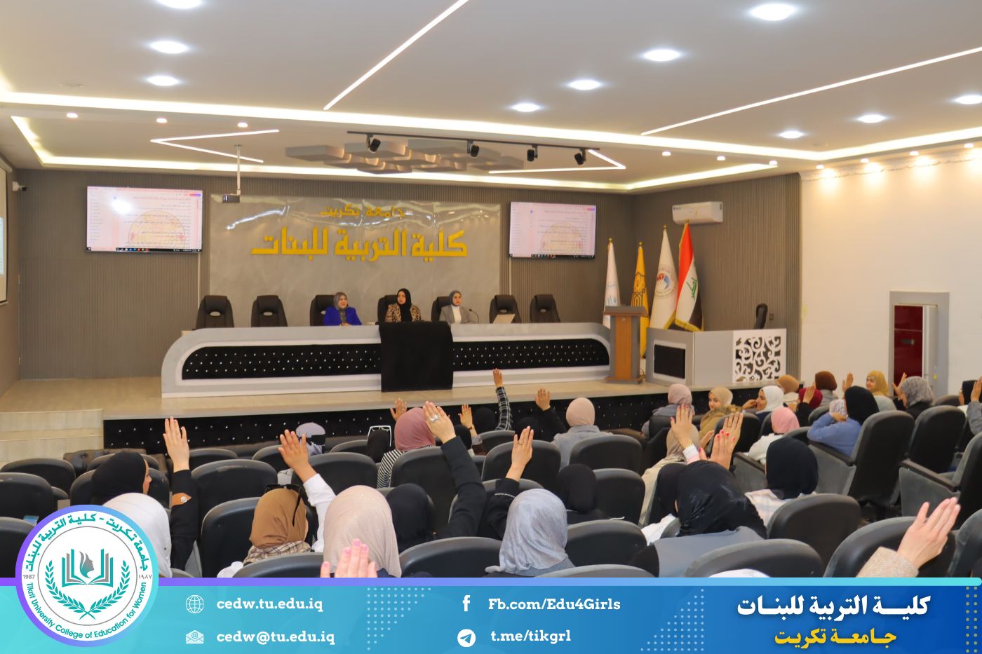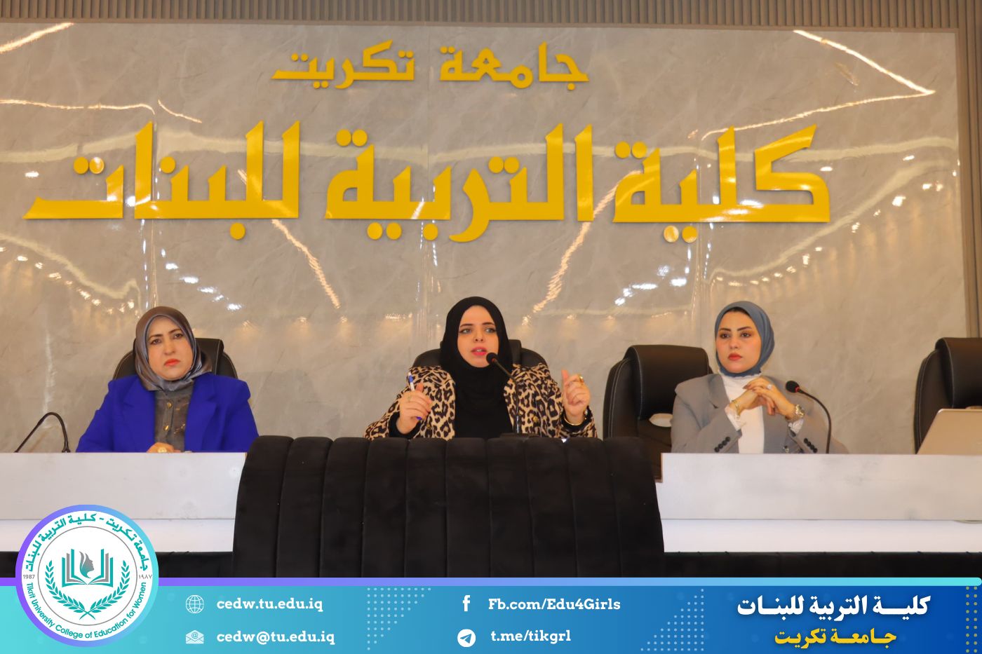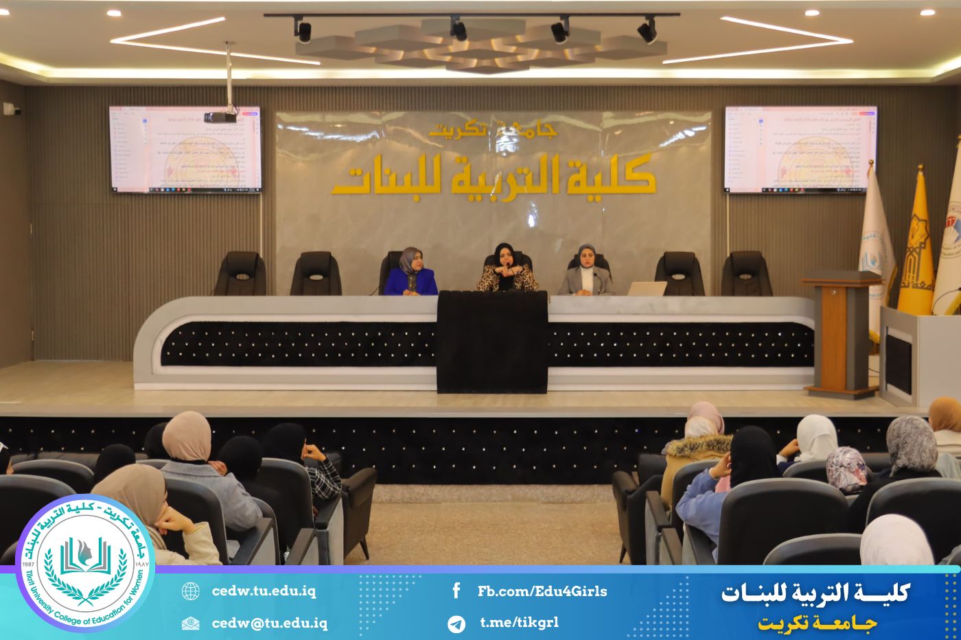 نظمت وحدة التأهيل والتوظيف والمتابعة في كلية التربية للبنات جامعة تكريت، وبالتعاون مع المديرية العامة لتربية صلاح الدين، ندوة علمية بعنوان «التطبيق التربوي في المدارس: بين آليات التنفيذ الفعّالة والتحديات الواقعية»، وذلك صباح يوم الأحد الموافق ٨ / ٢ / ٢٠٢٦، على قاعة المرحوم الأستاذ الدكتور جايد زيدان.