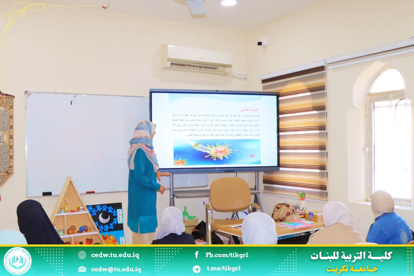 اقامت كلية التربية للبنات/ قسم الاقتصاد المنزلي بالتعاون مع مركز التعليم المستمر دورة بعنوان : التسمم الغذائي بواسطة الأحياء المجهرية وتأثيره على الجهاز الهضمي، وذلك ليومي الثلاثاء والاربعاء الموافق ١٥ - ١٦ / ٤ / ٢٠٢٥ ، وعلى رحاب قاعة قسم الاقتصاد المنزلي
