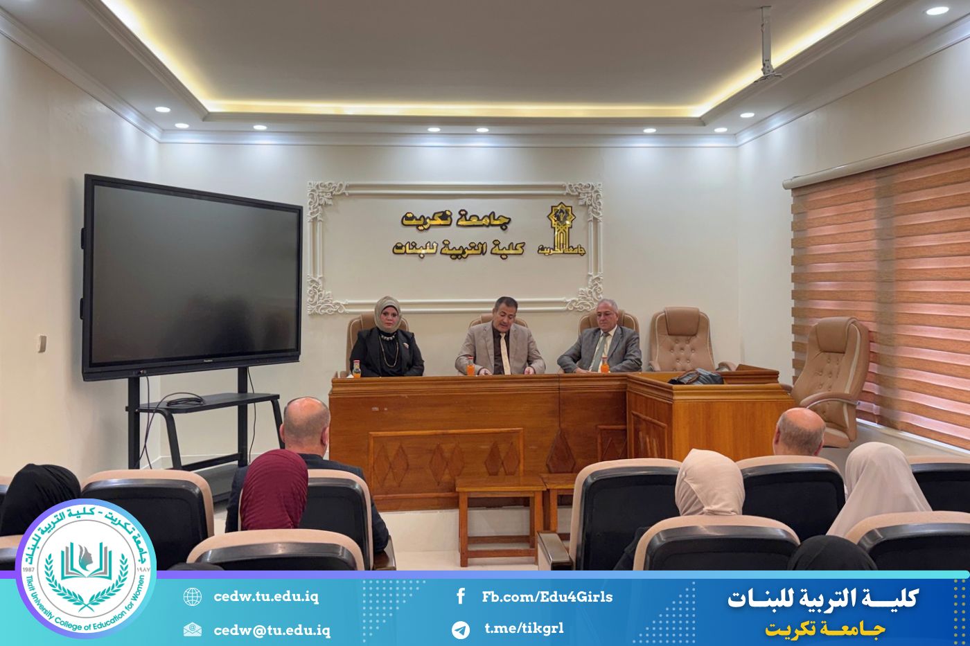 نظّمت وحدة الإرشاد التربوي والتوجيه النفسي بالتعاون مع قسم علوم الحياة في كلية التربية للبنات – جامعة تكريت، يوم الأحد الموافق ١٩ تشرين الأول ٢٠٢٥، ندوة علمية بعنوان: "التصدي للغش في الامتحانات الجامعية: الإطار القانوني والبدائل الإصلاحية"، وذلك على قاعة السمنار – الأقسام العلمية.