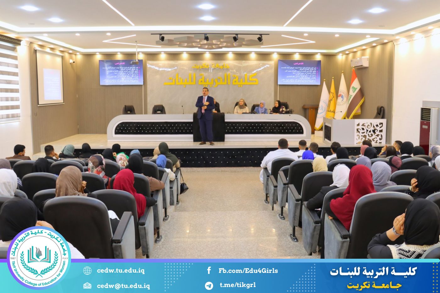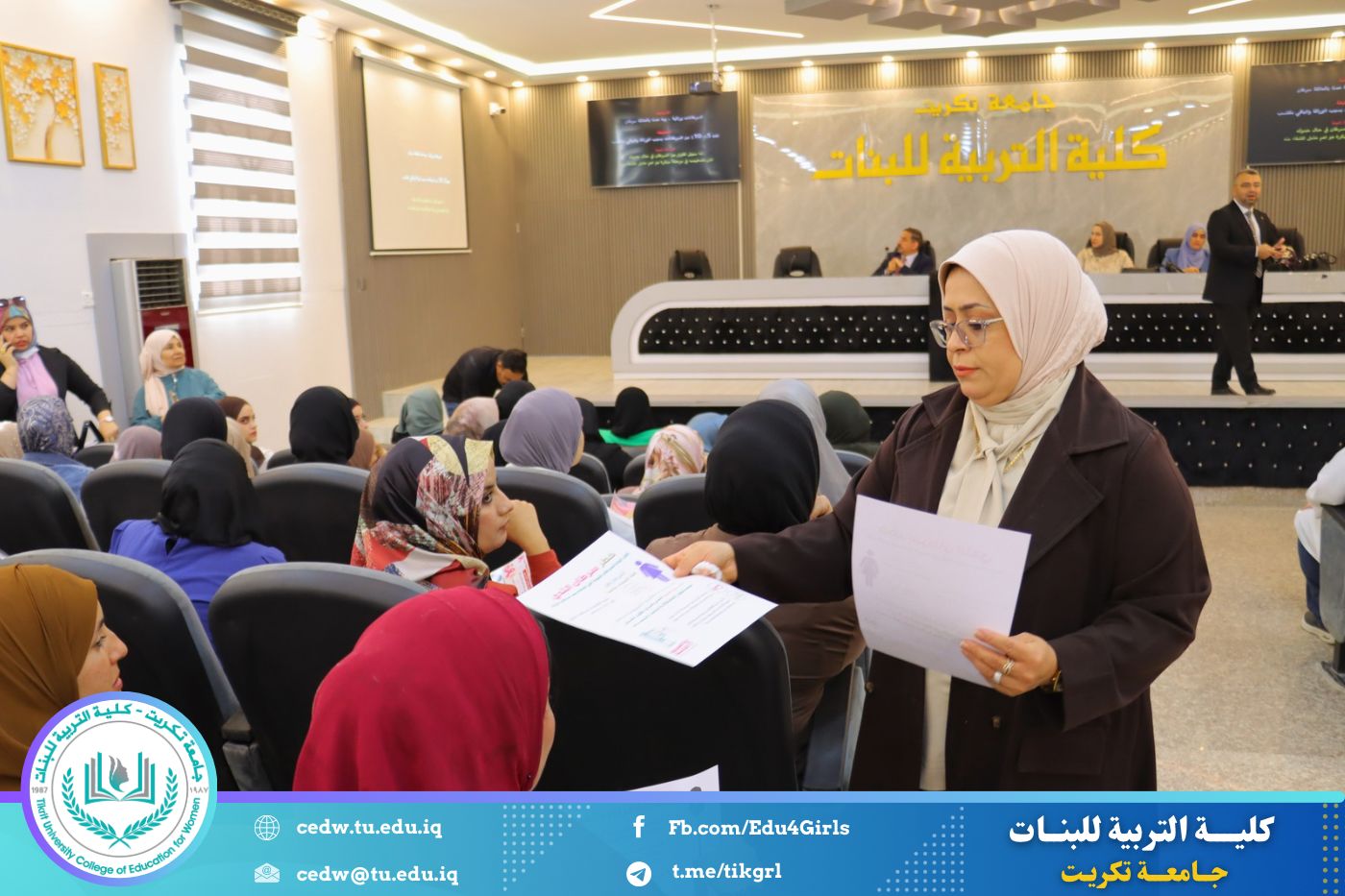 في إطار سعيها المستمر لنشر الوعي الصحي وتعزيز ثقافة الوقاية بين أوساط الطالبات والمنتسبات، نظّمت كلية التربية للبنات في جامعة تكريت، بالتعاون مع شعبة شؤون المرأة ومديرية صحة صلاح الدين وكلية الطب، صباح يوم الأحد الموافق ١٩ تشرين الأول ٢٠٢٥، ندوة توعوية موسّعة حملت عنوان: "الكشف المبكر عن سرطان الثدي"، وذلك على قاعة المرحوم الأستاذ الدكتور جايد زيدان في عمادة الكلية.