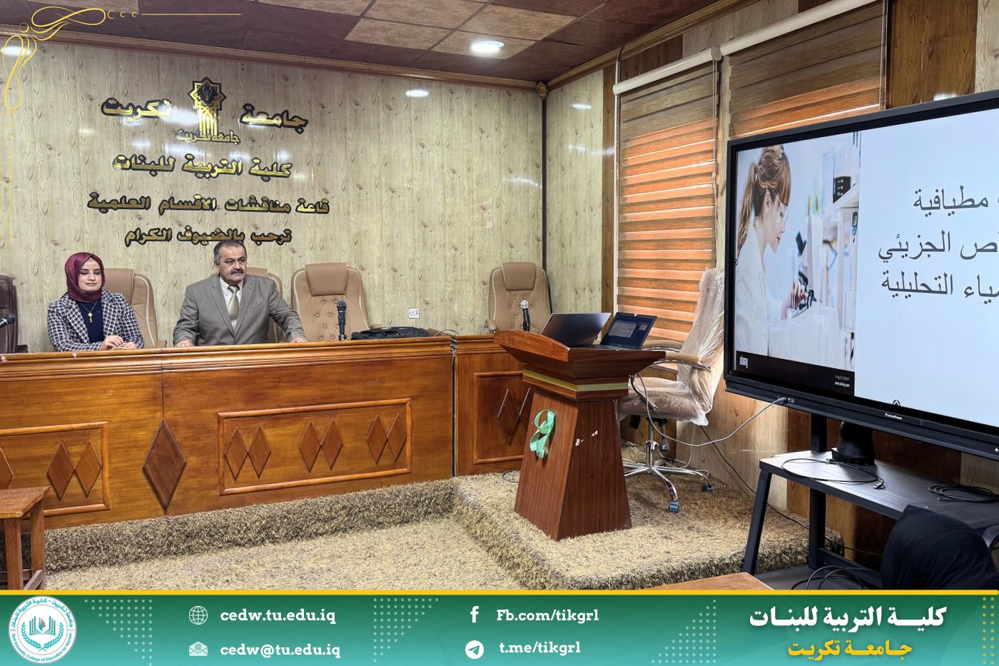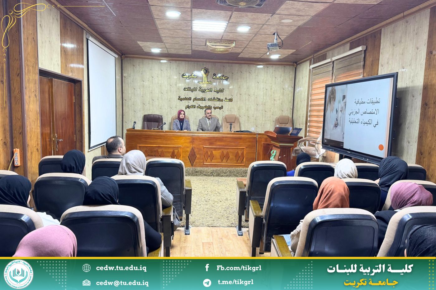 اقام مركز التعليم المستمر بالتعاون مع كلية التربية للبنات دورة علمية بعنوان : تطبيقات مطيافية الامتصاص الجزيئي في الكيمياء التحليلية ، وذلك ليومي الثلاثاء والأربعاء الموافق ١٨ - ١٩ / ٢ / ٢٠٢٥ على رحاب قاعة السمنار - بناية الأقسام العلمية