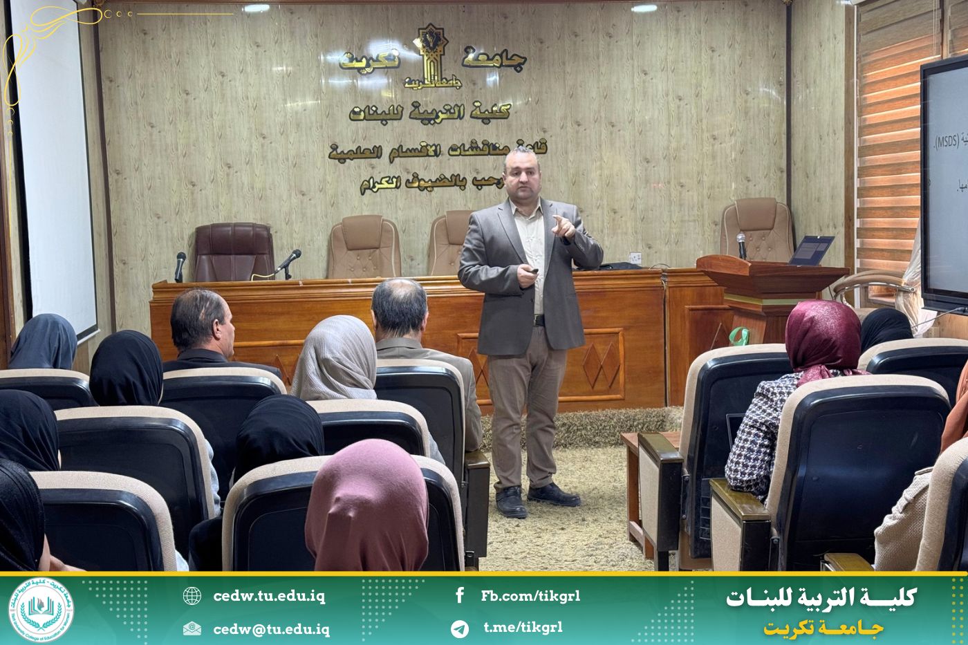 إذ قدم رؤى متعددة حول اشتراطات لتحقيق الأمن والسلامة داخل المختبرات الكيميائية ، والتعرف على إرشادات السلامة في التعامل مع المواد الكيمياوية ، مع ضمان السلوك السليم داخل المختبر