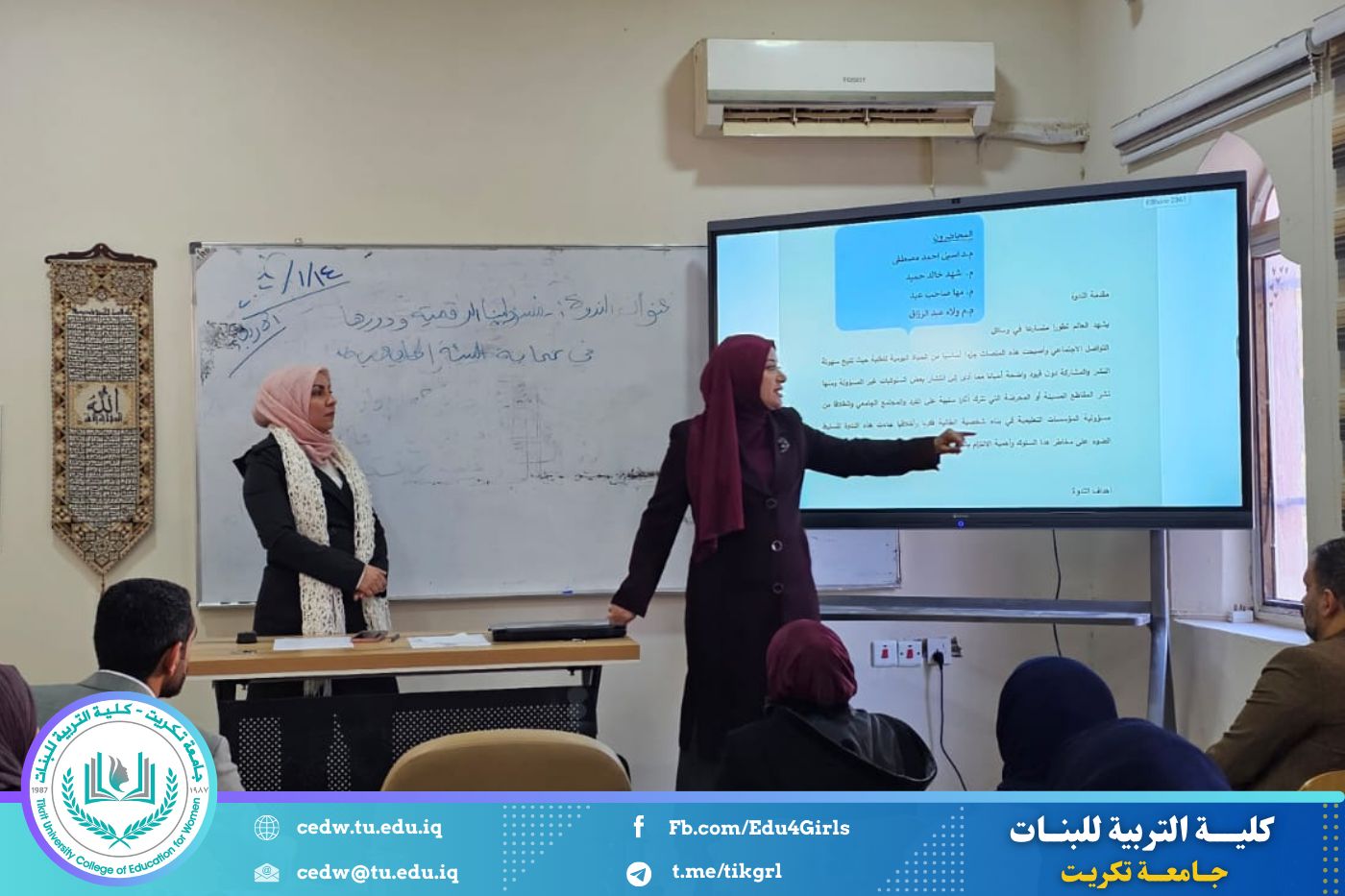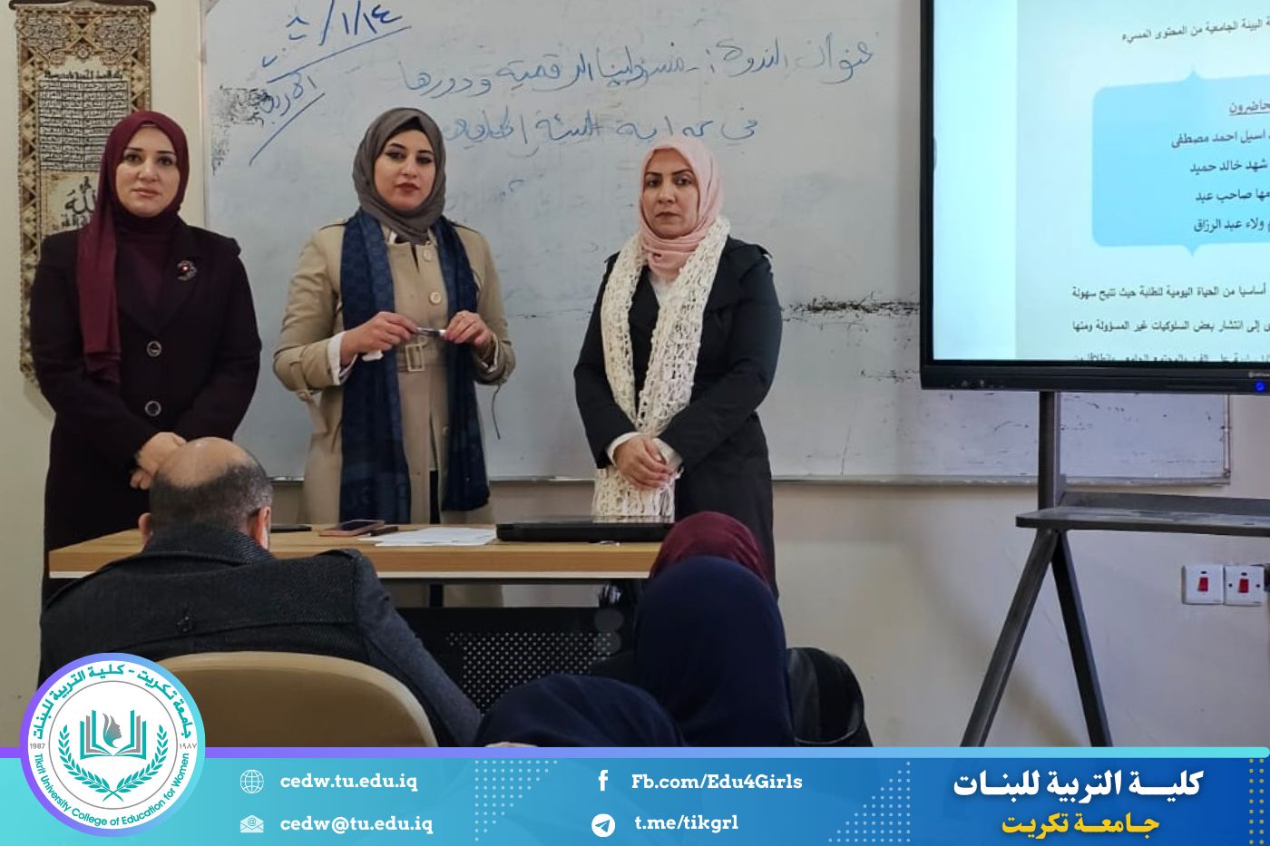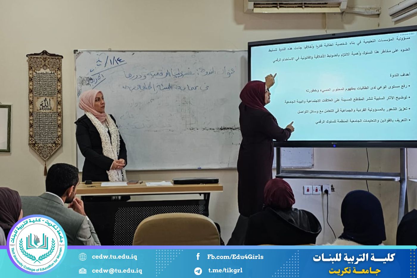 نظّم قسم الاقتصاد المنزلي في كلية التربية للبنات بجامعة تكريت، وبالتعاون مع وحدة الإرشاد النفسي والتوجيه التربوي، ندوةً إرشاديةً بعنوان: «مسؤوليتنا الرقمية ودورها في حماية البيئة الجامعية»، وذلك صباح يوم الأربعاء الموافق ١٤ / ١ / ٢٠٢٦، وعلى رحاب قاعة قسم الاقتصاد المنزلي، وبمشاركة عدد من التدريسيات والطالبات.