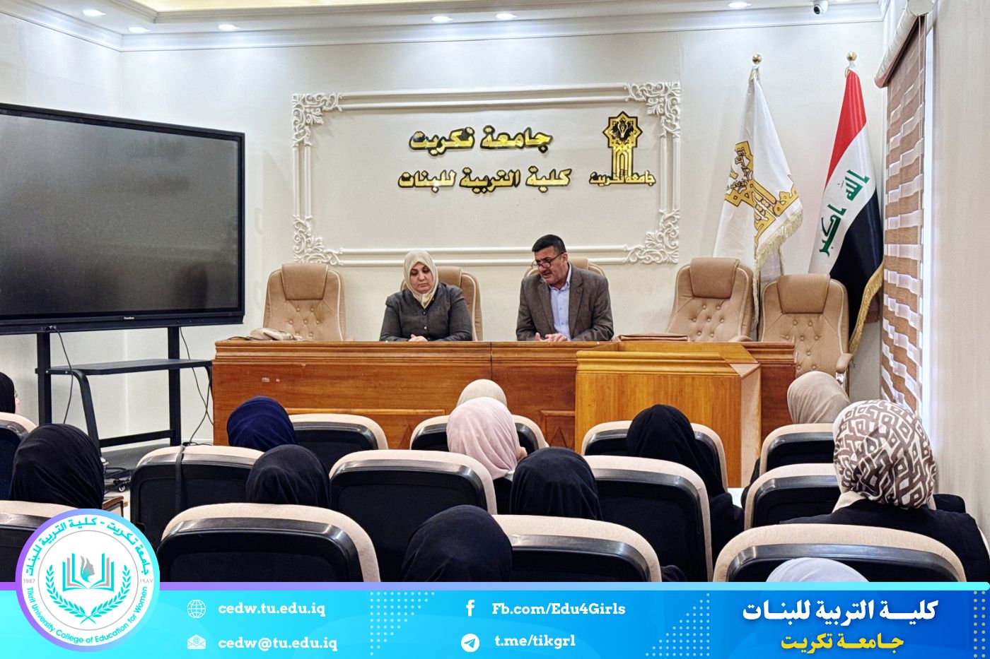 أقامت كلية التربية للبنات – قسم العلوم التربوية والنفسية، وبالتعاون مع مركز التعليم المستمر، دورة تدريبية بعنوان (أساسيات وضوابط التطبيق لطالبات المرحلة الرابعة)، وذلك يومي الأربعاء والخميس الموافق 11–12 / 2 / 2026، على قاعة السمنار في بناية العمادة