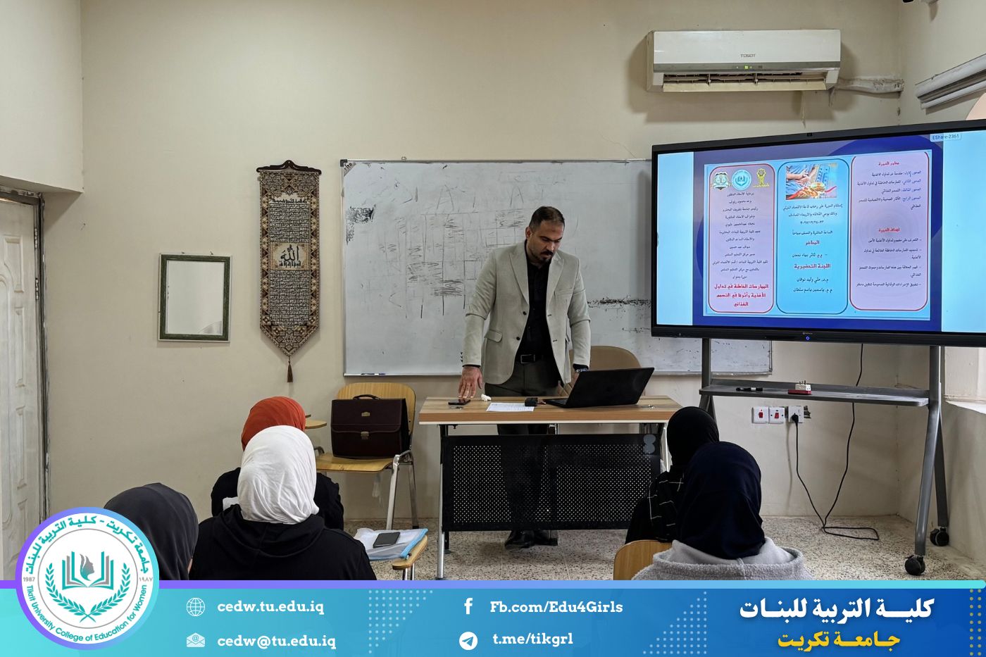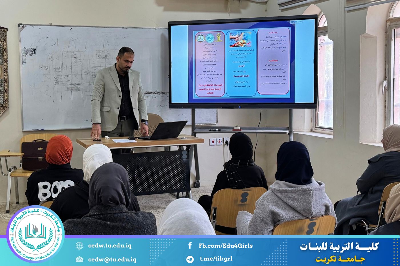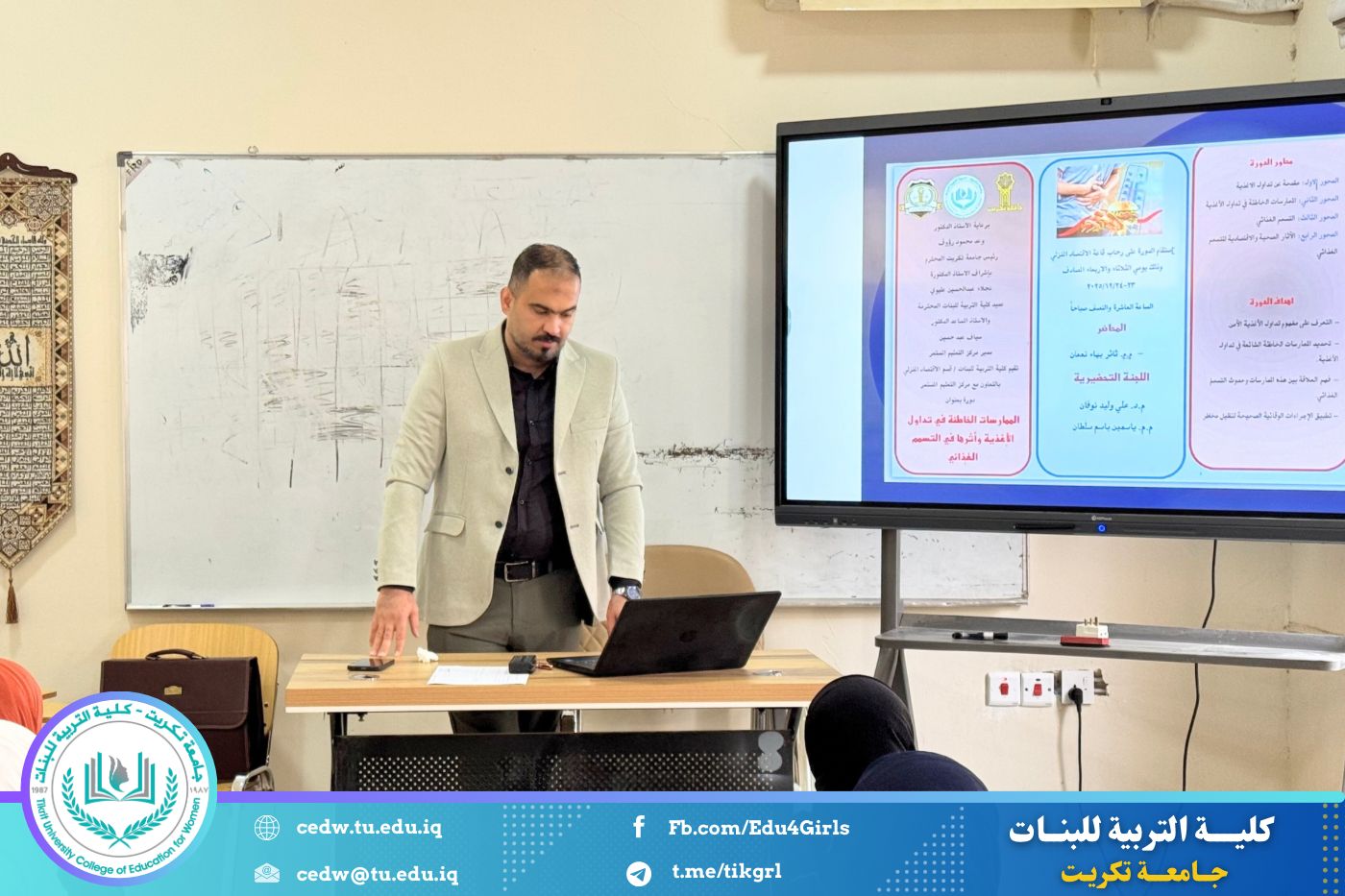نظّم قسم الاقتصاد المنزلي في كلية التربية للبنات بجامعة تكريت، وبالتعاون مع مركز التعليم المستمر، دورة علمية بعنوان «الممارسات الخاطئة في تداول الأغذية وأثرها في التسمم الغذائي»، وذلك على مدى يومي الثلاثاء والأربعاء الموافقين ٢٣–٢٤ / ١٢ / ٢٠٢٥، وعلى رحاب قاعة قسم الاقتصاد المنزلي.
