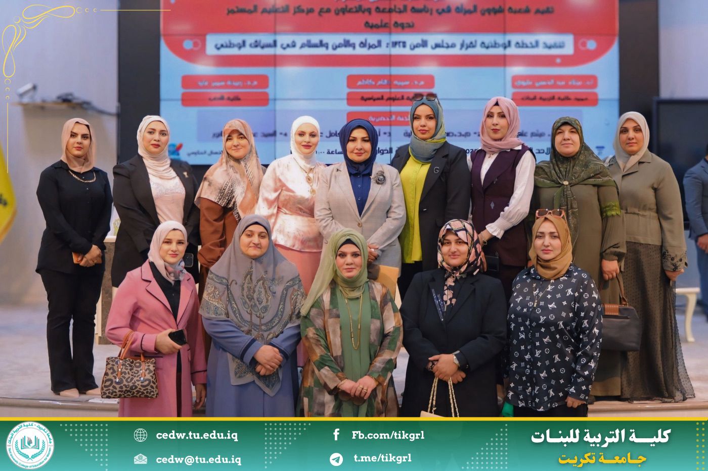 واشارت السيدة عميد كلية التربية للبنات إلى أن تطبيق القرار الأممي ١٣٢٥ في السياق العراقي يتطلب مزيدًا من الجهود التنسيقية بين المؤسسات الحكومية والأكاديمية ومنظمات المجتمع المدني.