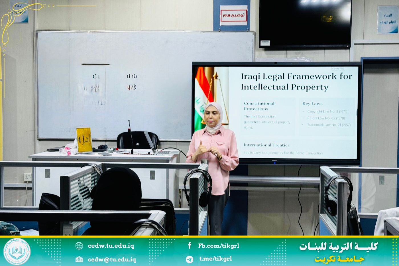 أقامت كلية التربية للبنات شعبة الدراسات العليا بالتعاون مع قسم اللغة الإنكليزية ندوة علمية بعنوان:(أخلاقيات الملكية الفكرية) في اليوم الاثنين الموافق 2025/4/28 على قاعة مختبر الصوت