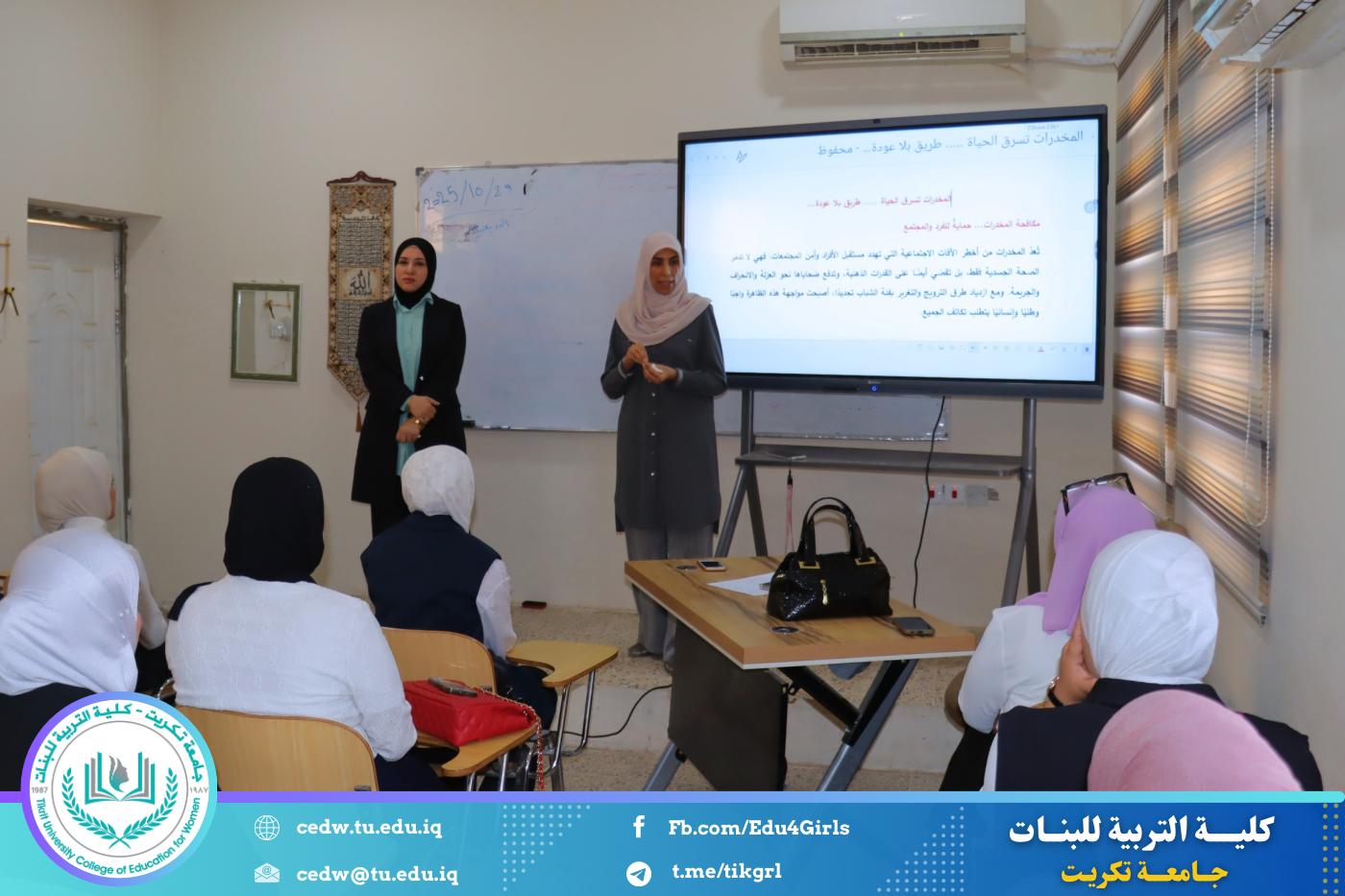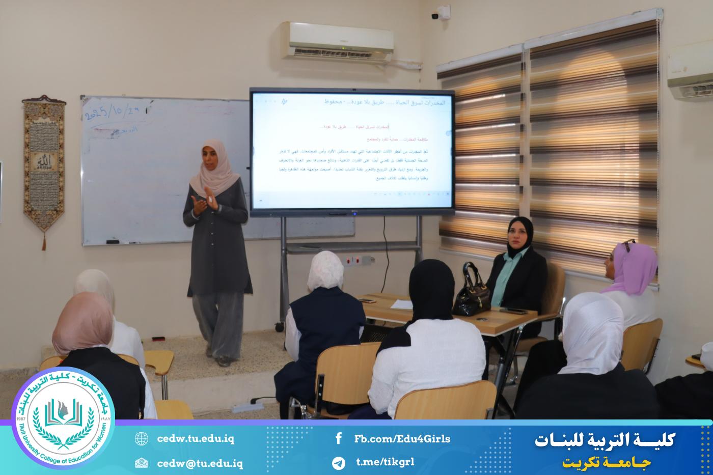 نظّمت وحدة الإرشاد النفسي والتوجيه التربوي بالتعاون مع قسم الاقتصاد المنزلي في كلية التربية للبنات – جامعة تكريت، يوم الأربعاء الموافق ٢٩ تشرين الأول ٢٠٢٥، ندوةً إرشادية بعنوان: "المخدرات تسرق الحياة... طريق بلا عودة"، وذلك على رحاب قاعة قسم الاقتصاد المنزلي.